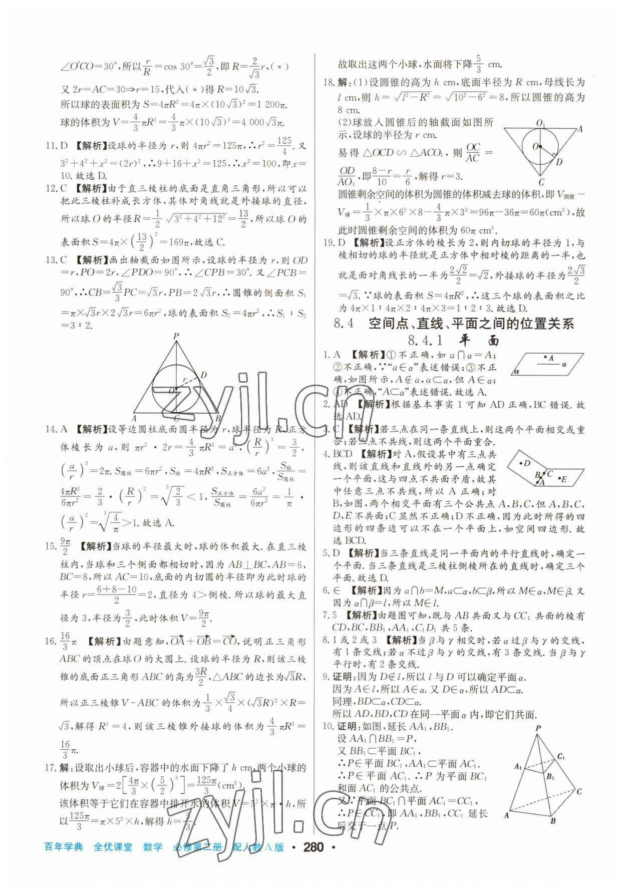 2022年百年学典全优课堂高中数学必修第二册人教版A版