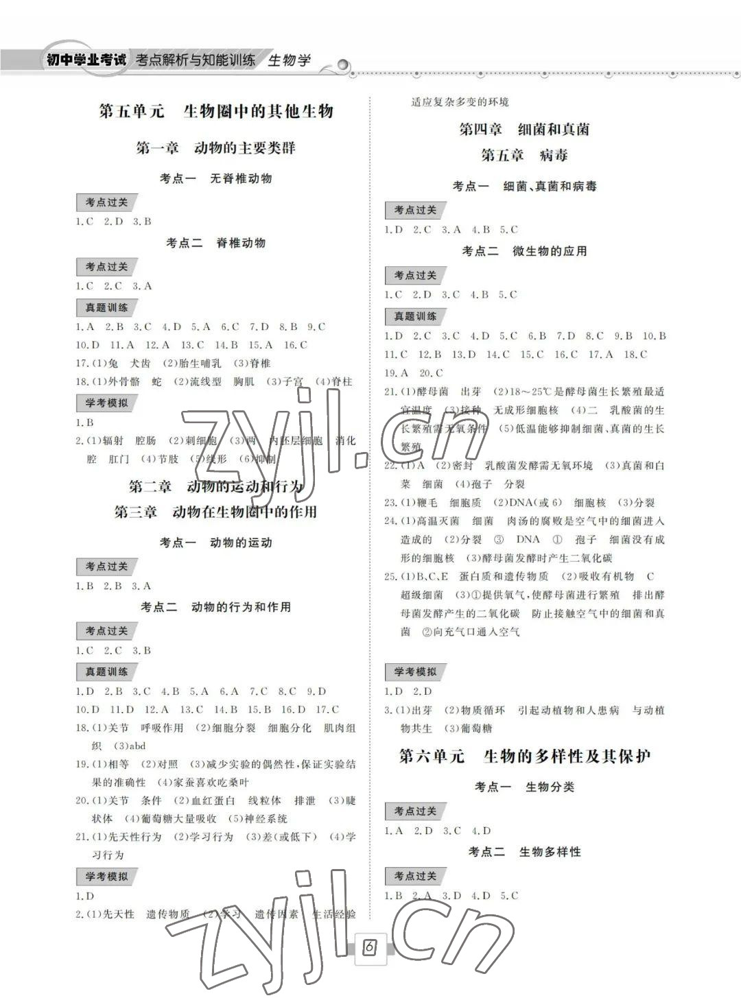 注:目前有些书本章节名称可能整理的还不是很完善,但都是按照顺序排列的,请同学们按照顺序仔细查找。练习册 2022年初中学业考试考点解析与知能训练生物 答案主要是用来给同学们做完题方便对答案用的,请勿直接抄袭。