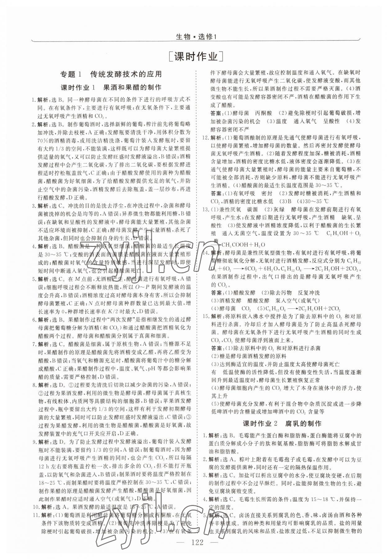 2022年新坐标同步练习高中生物选修1人教版青海专版