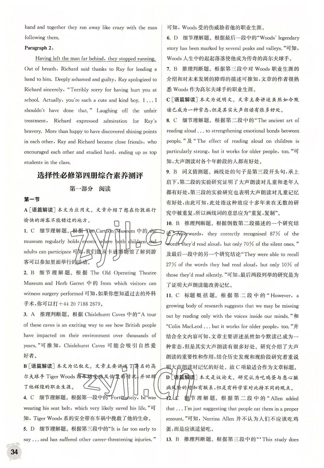 2022年通城学典课时作业本英语选择性必修第四册译林版