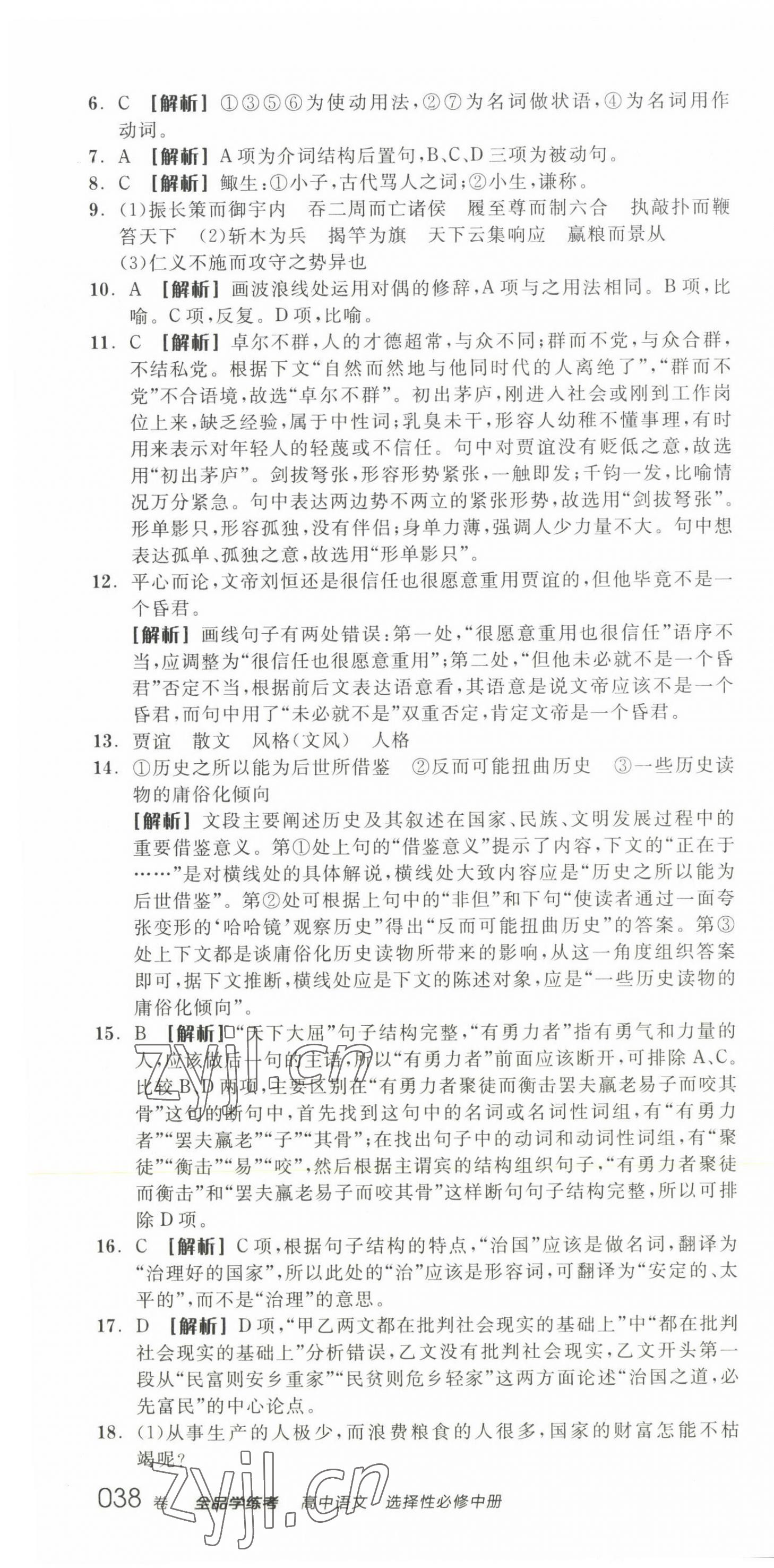 注:目前有些书本章节名称可能整理的还不是很完善,但都是按照顺序排列的,请同学们按照顺序仔细查找。练习册 2022年全品学练考高中语文4选择性必修中册 答案主要是用来给同学们做完题方便对答案用的,请勿直接抄袭。