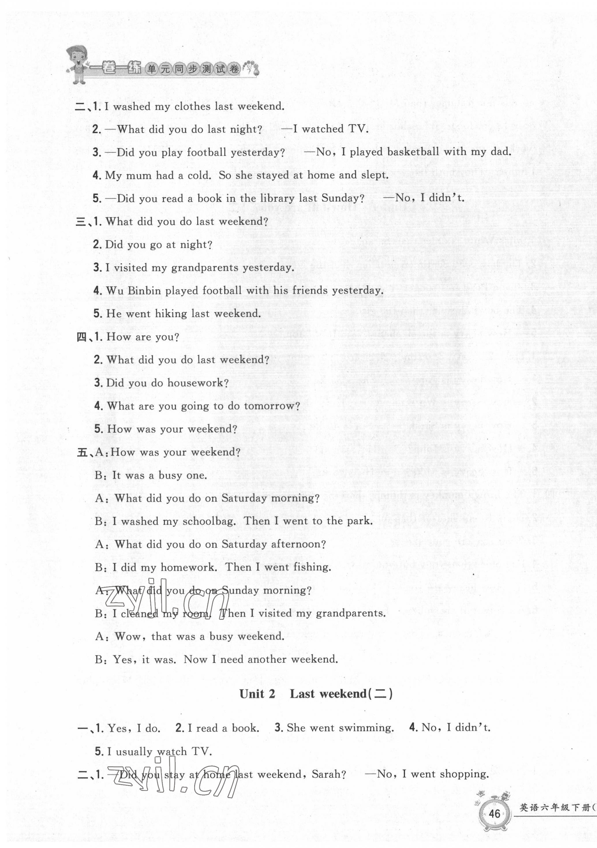 注:目前有些书本章节名称可能整理的还不是很完善,但都是按照顺序排列的,请同学们按照顺序仔细查找。练习册 2022年一卷一练单元同步测试卷六年级英语下册人教版 答案主要是用来给同学们做完题方便对答案用的,请勿直接抄袭。