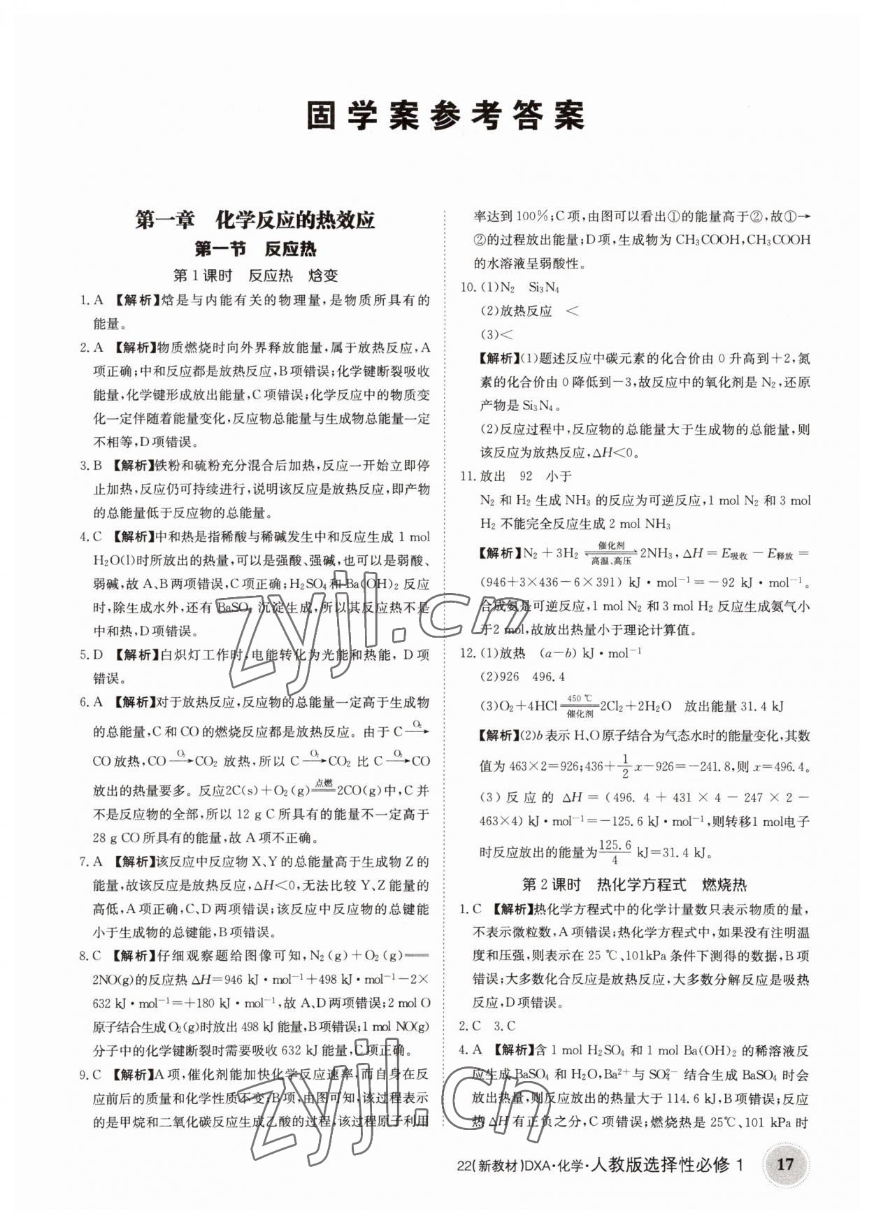 注:目前有些书本章节名称可能整理的还不是很完善,但都是按照顺序排列的,请同学们按照顺序仔细查找。练习册 2022年金太阳导学案高中化学选择性必修1人教版 答案主要是用来给同学们做完题方便对答案用的,请勿直接抄袭。