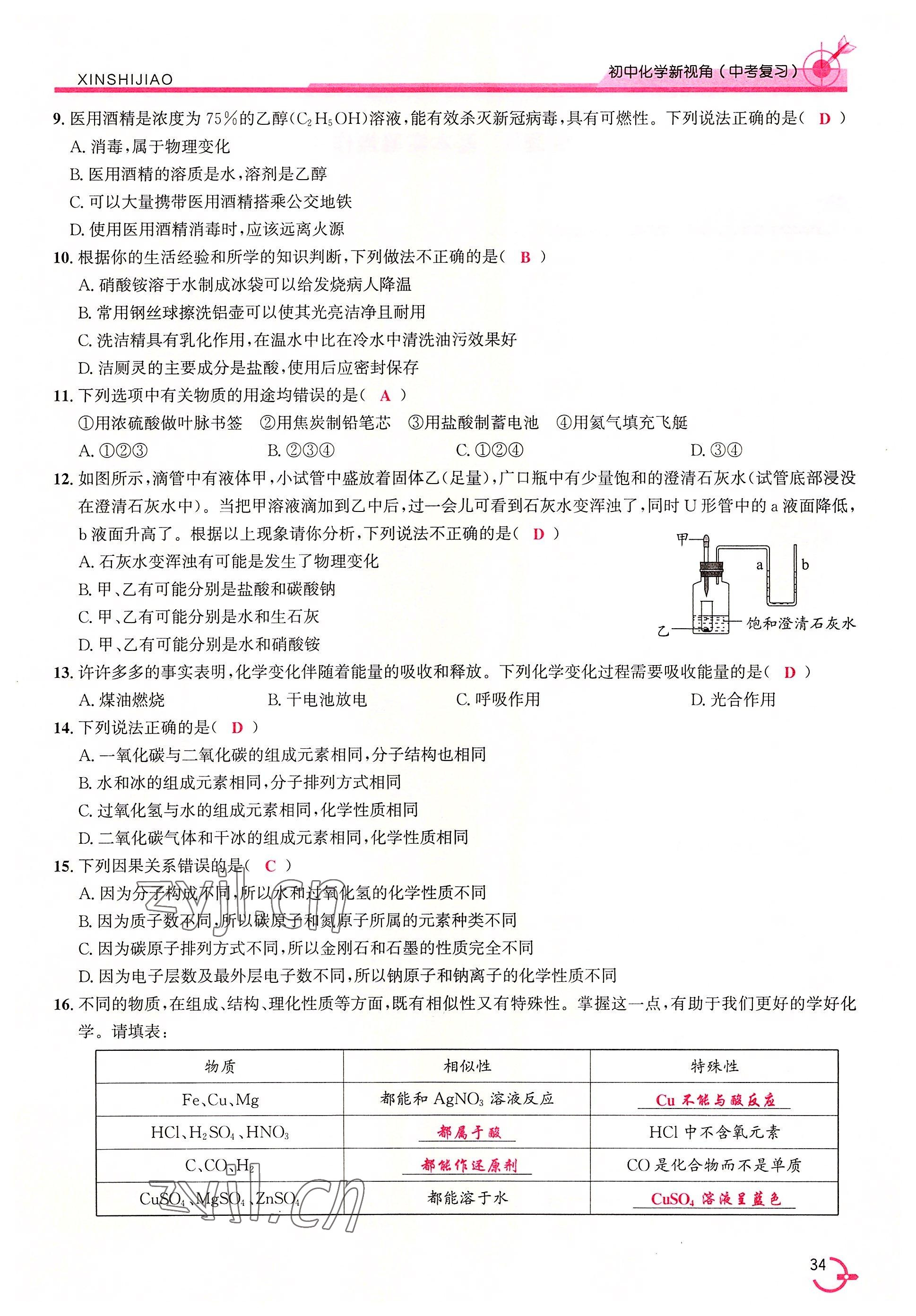 注:目前有些书本章节名称可能整理的还不是很完善,但都是按照顺序排列的,请同学们按照顺序仔细查找。练习册 2022年新视角教辅系列丛书化学中考复习 答案主要是用来给同学们做完题方便对答案用的,请勿直接抄袭。