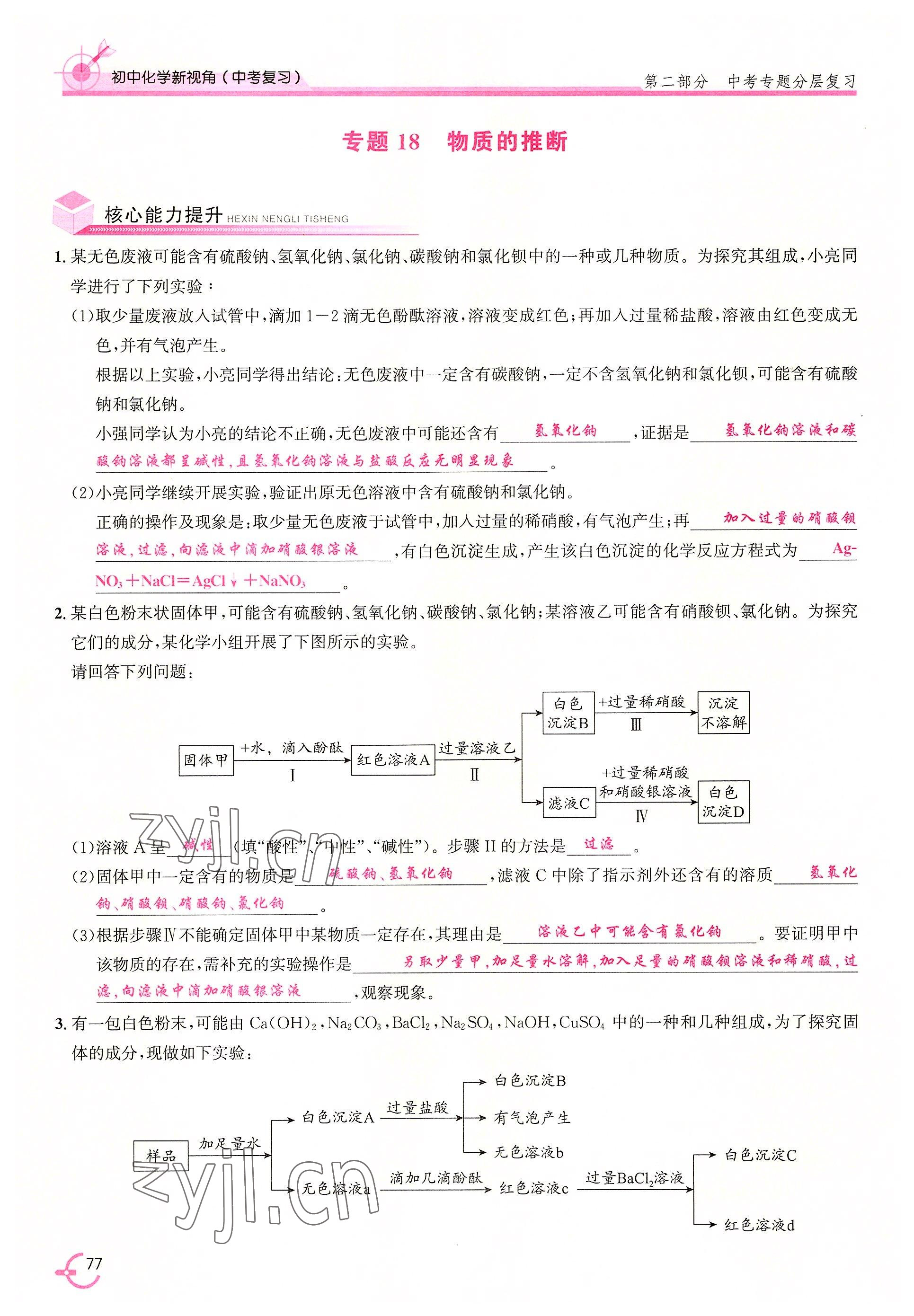 注:目前有些书本章节名称可能整理的还不是很完善,但都是按照顺序排列的,请同学们按照顺序仔细查找。练习册 2022年新视角教辅系列丛书化学中考复习 答案主要是用来给同学们做完题方便对答案用的,请勿直接抄袭。