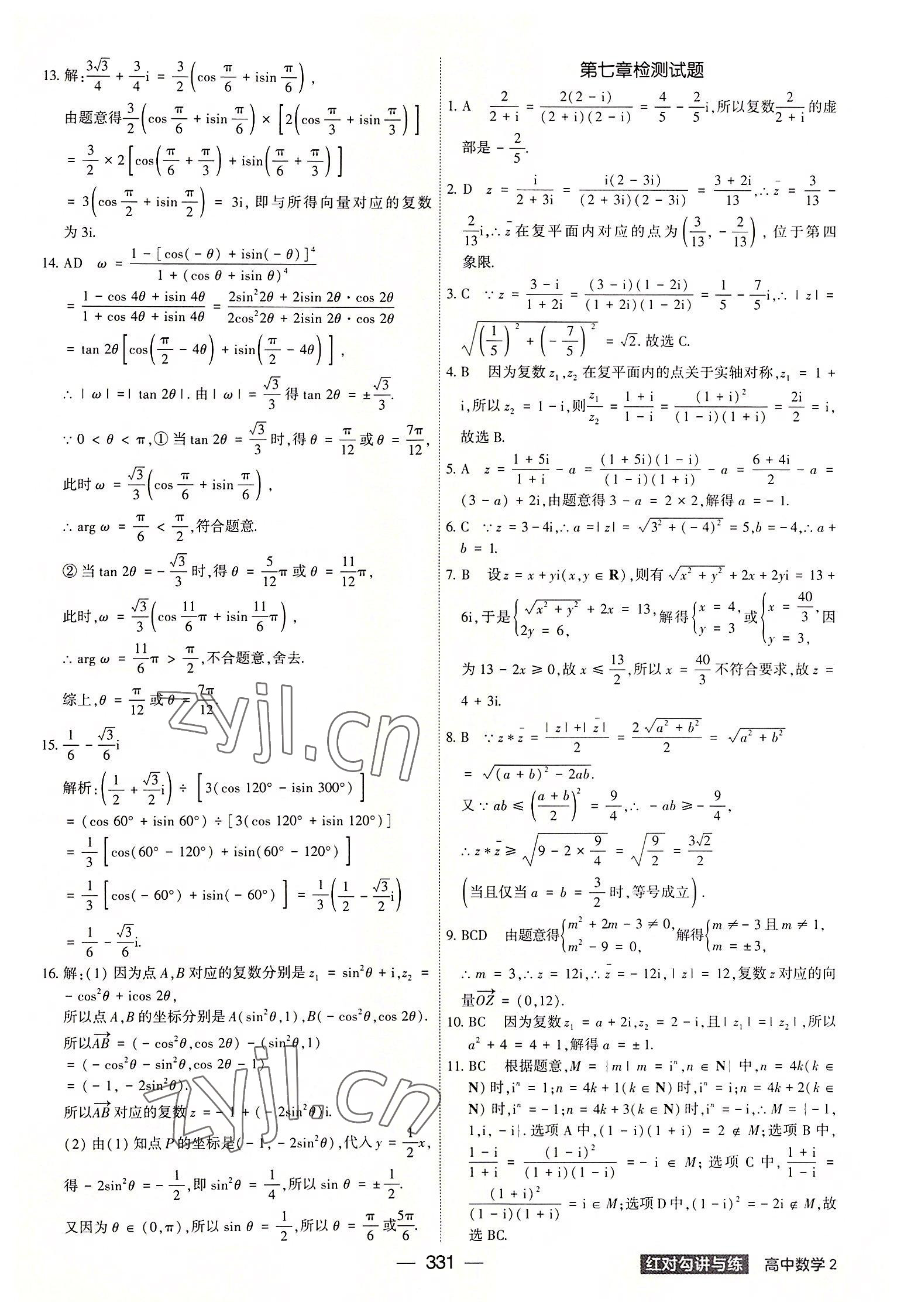 注:目前有些书本章节名称可能整理的还不是很完善,但都是按照顺序排列的,请同学们按照顺序仔细查找。练习册 2022年红对勾讲与练高中数学必修第二册人教版 答案主要是用来给同学们做完题方便对答案用的,请勿直接抄袭。