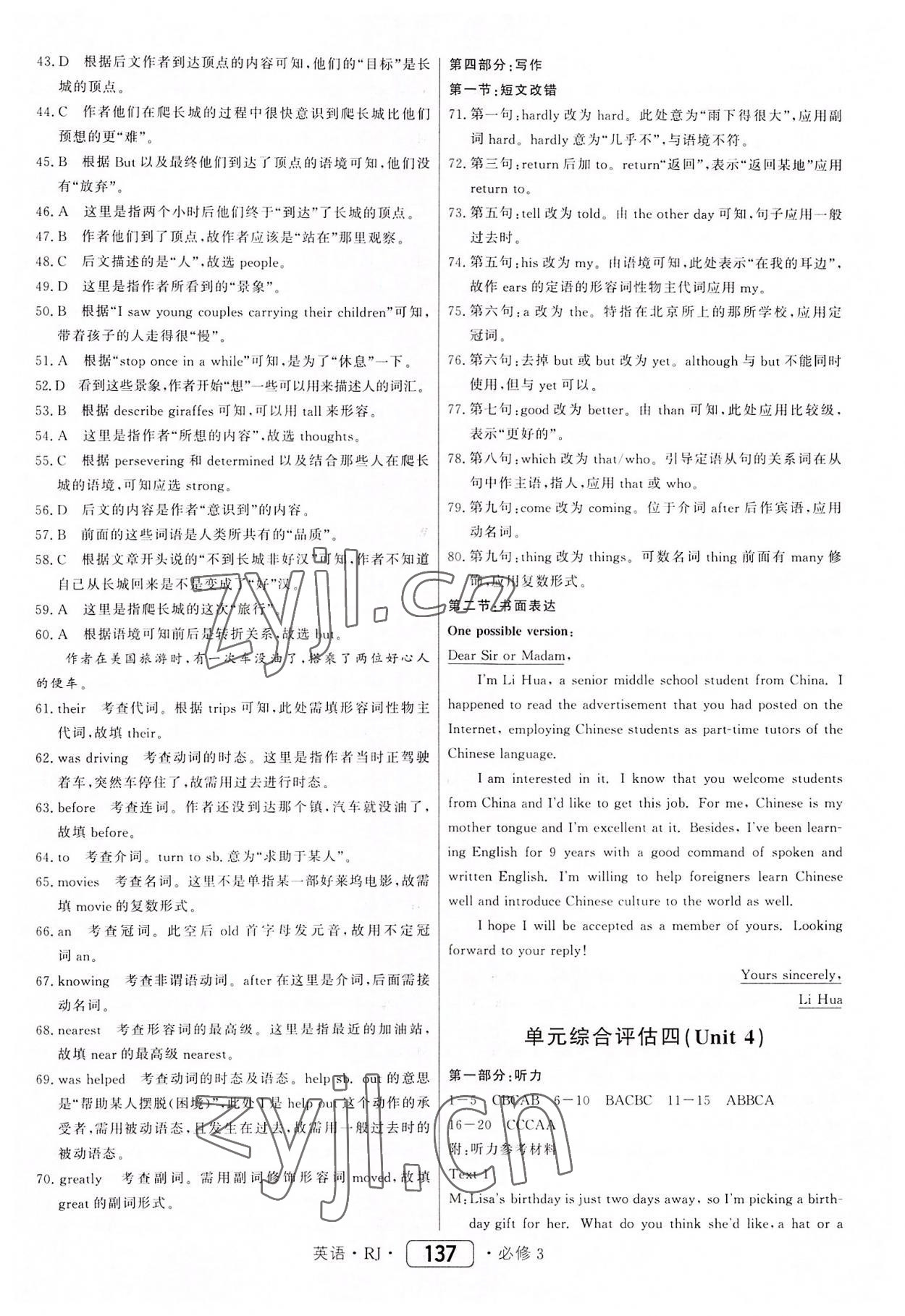 注:目前有些书本章节名称可能整理的还不是很完善,但都是按照顺序排列的,请同学们按照顺序仔细查找。练习册 2022年红对勾45分钟作业与单元评估英语必修3人教版 答案主要是用来给同学们做完题方便对答案用的,请勿直接抄袭。