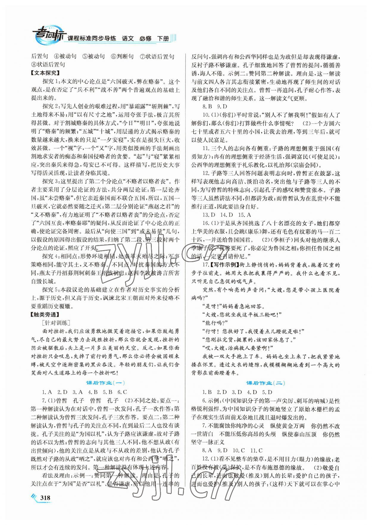 注:目前有些书本章节名称可能整理的还不是很完善,但都是按照顺序排列的,请同学们按照顺序仔细查找。练习册 2022年课程标准同步导练语文必修下册 答案主要是用来给同学们做完题方便对答案用的,请勿直接抄袭。