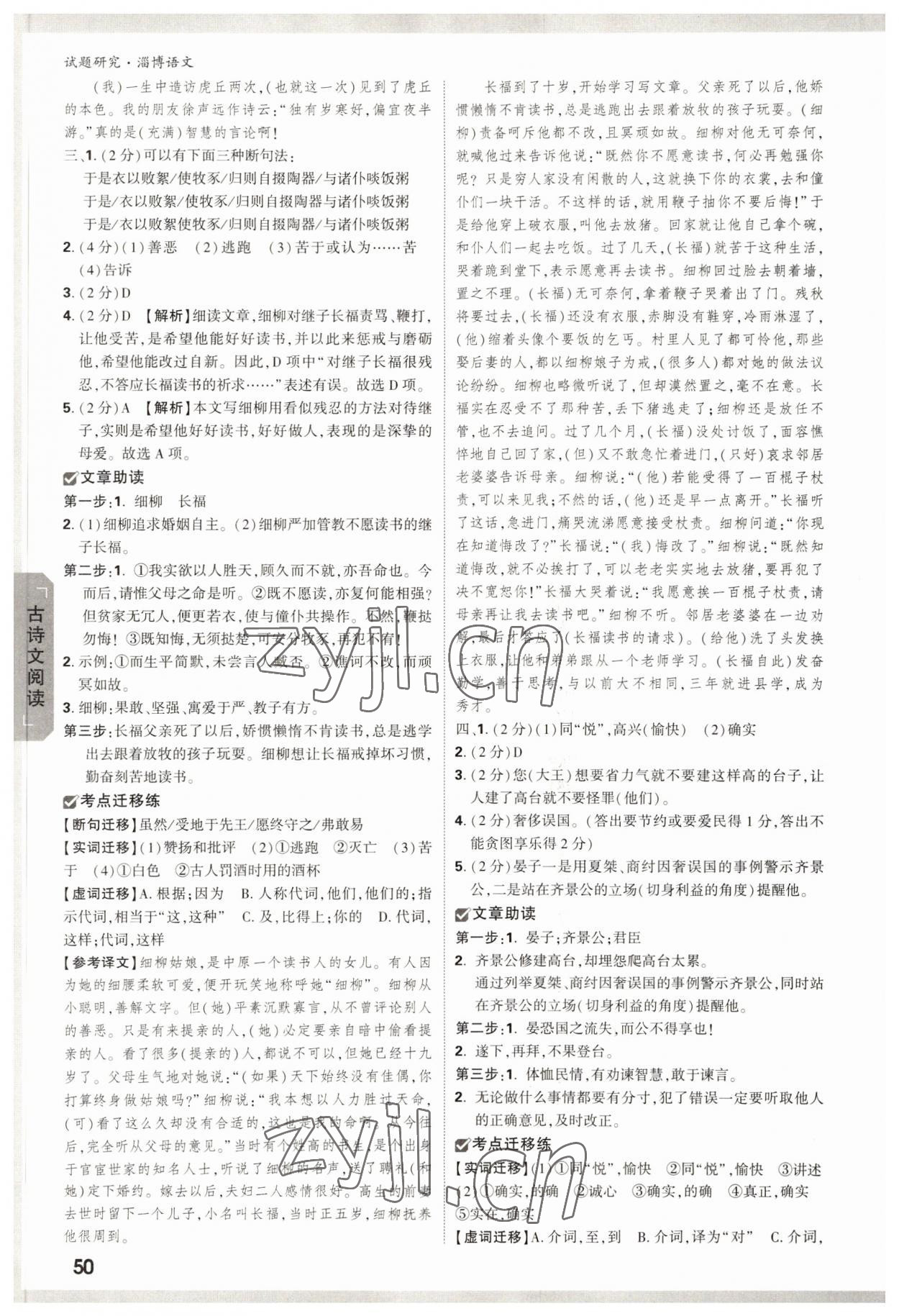 2022年万唯中考试题研究语文中考淄博专版