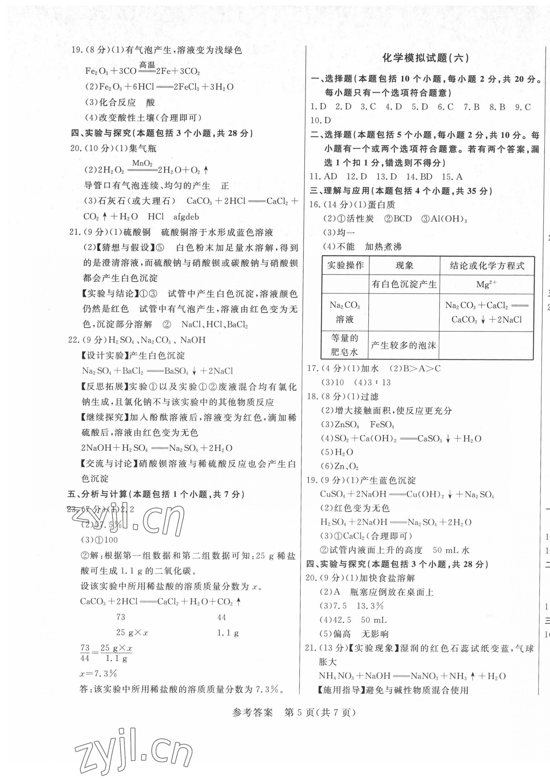 《2022年亮点激活中考仿真模拟卷化学烟台专版》