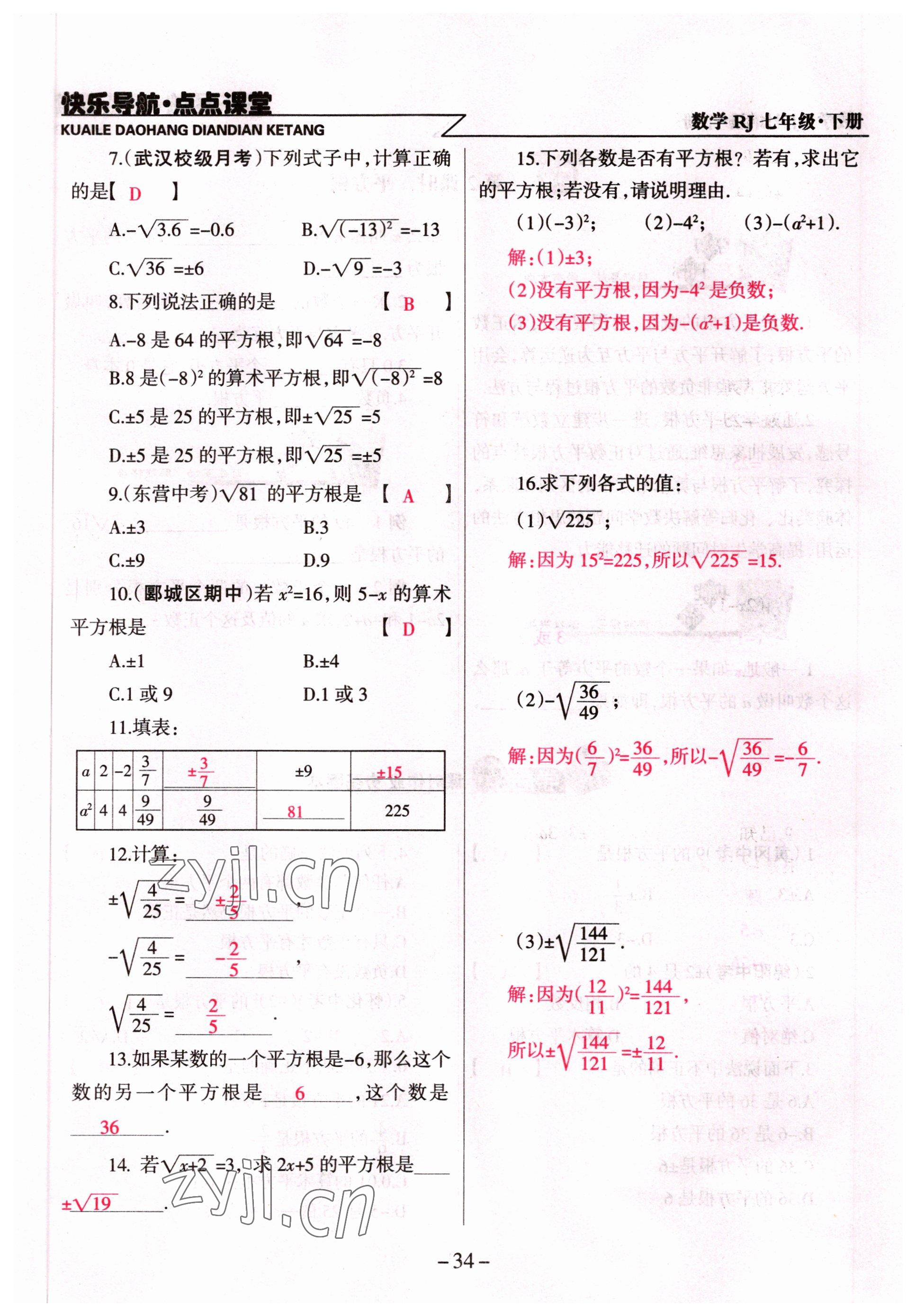 注:目前有些书本章节名称可能整理的还不是很完善,但都是按照顺序排列的,请同学们按照顺序仔细查找。练习册 2022年快乐导航点点课堂七年级数学下册人教版 答案主要是用来给同学们做完题方便对答案用的,请勿直接抄袭。