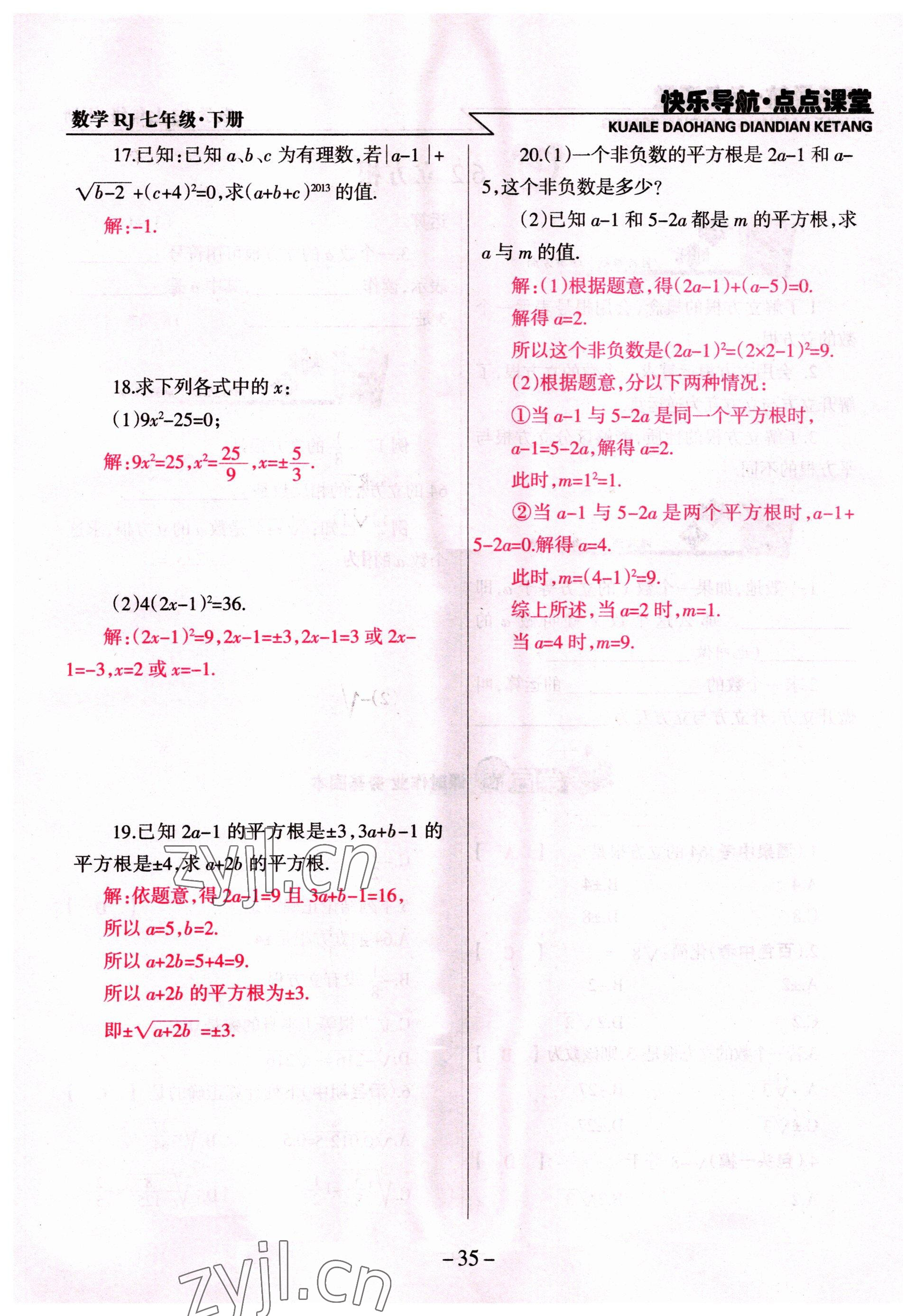 注:目前有些书本章节名称可能整理的还不是很完善,但都是按照顺序排列的,请同学们按照顺序仔细查找。练习册 2022年快乐导航点点课堂七年级数学下册人教版 答案主要是用来给同学们做完题方便对答案用的,请勿直接抄袭。