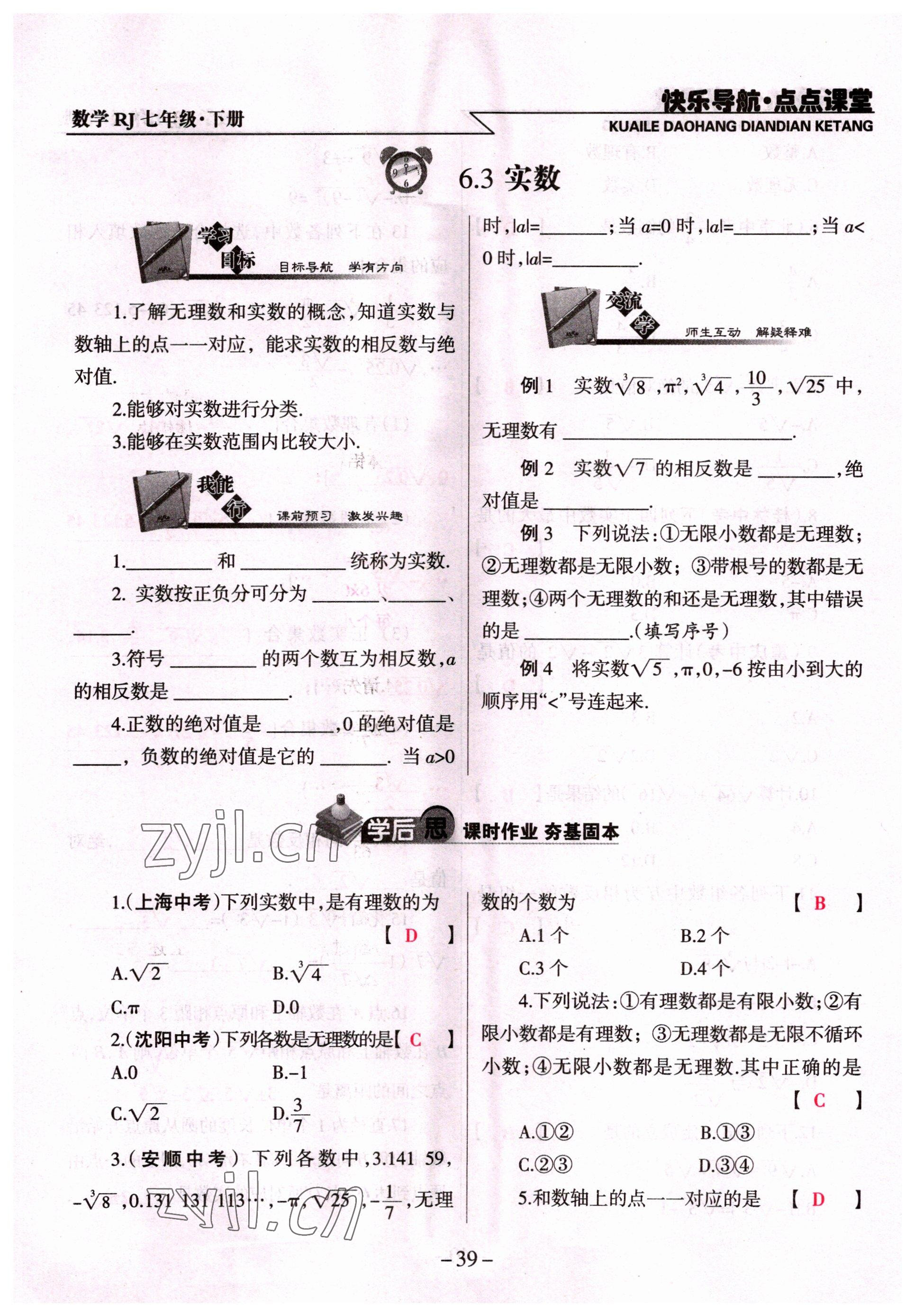 注:目前有些书本章节名称可能整理的还不是很完善,但都是按照顺序排列的,请同学们按照顺序仔细查找。练习册 2022年快乐导航点点课堂七年级数学下册人教版 答案主要是用来给同学们做完题方便对答案用的,请勿直接抄袭。