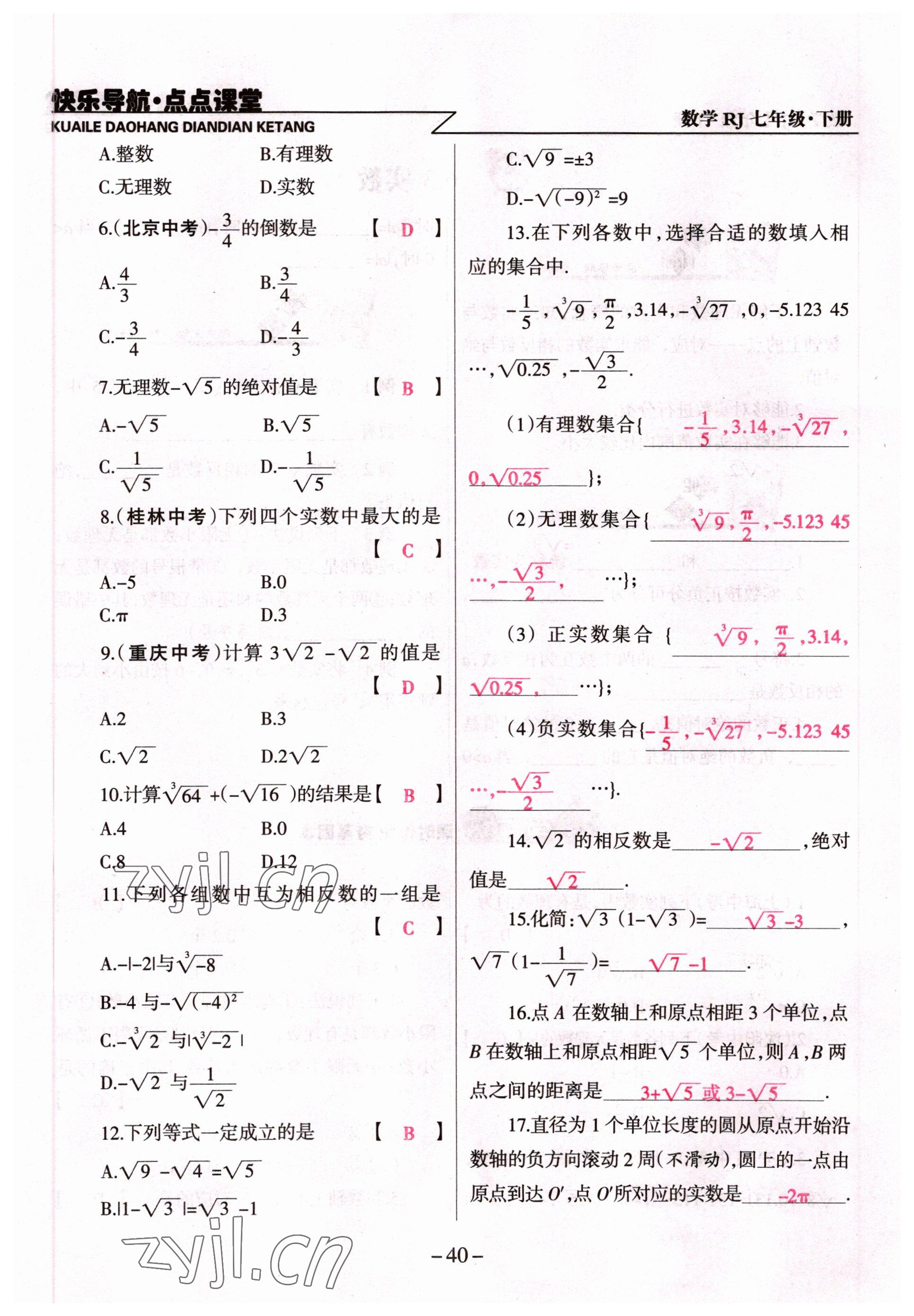 注:目前有些书本章节名称可能整理的还不是很完善,但都是按照顺序排列的,请同学们按照顺序仔细查找。练习册 2022年快乐导航点点课堂七年级数学下册人教版 答案主要是用来给同学们做完题方便对答案用的,请勿直接抄袭。