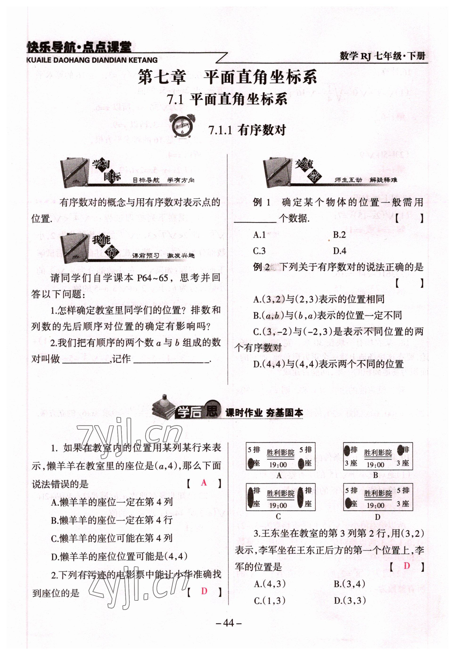 注:目前有些书本章节名称可能整理的还不是很完善,但都是按照顺序排列的,请同学们按照顺序仔细查找。练习册 2022年快乐导航点点课堂七年级数学下册人教版 答案主要是用来给同学们做完题方便对答案用的,请勿直接抄袭。