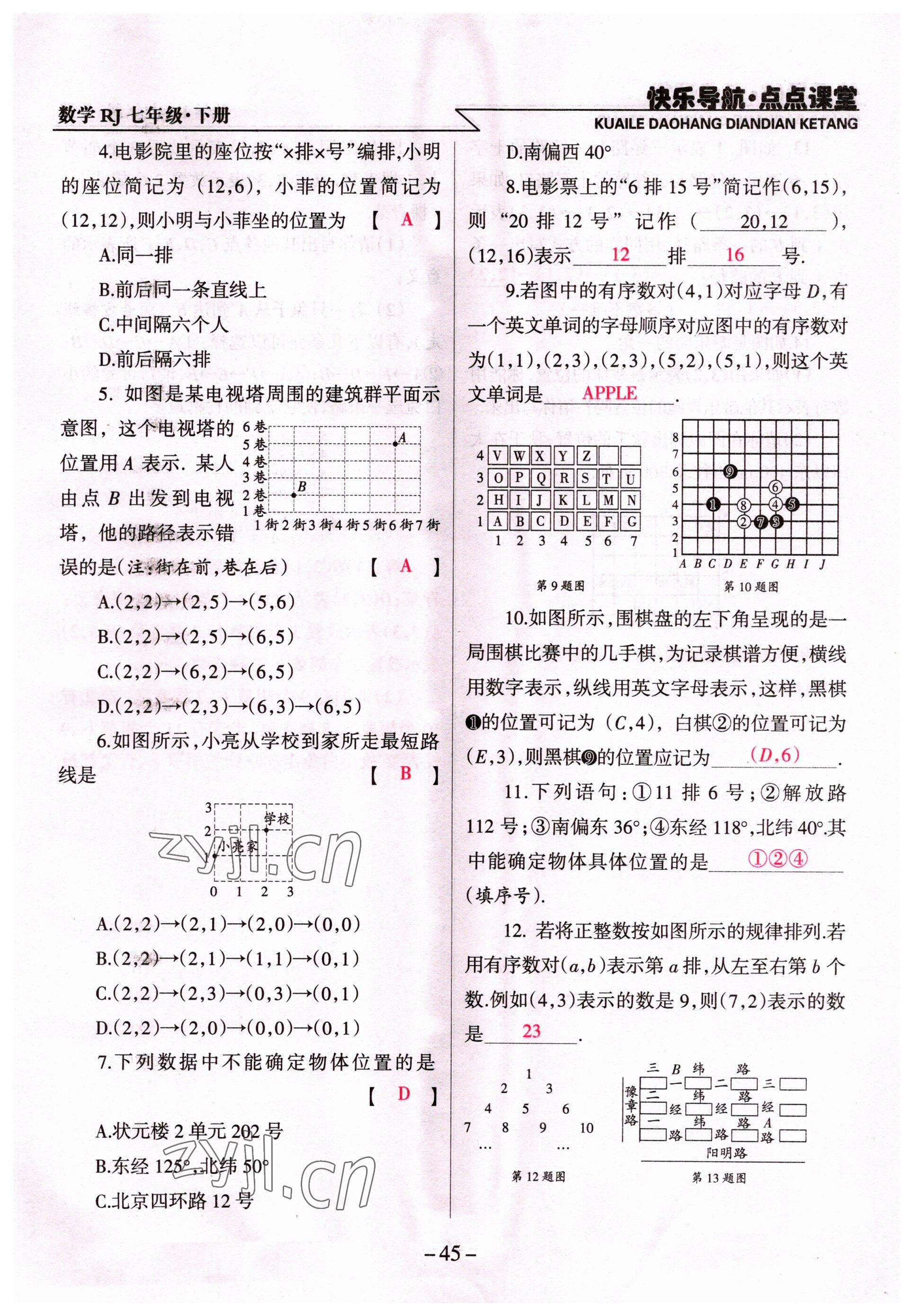 注:目前有些书本章节名称可能整理的还不是很完善,但都是按照顺序排列的,请同学们按照顺序仔细查找。练习册 2022年快乐导航点点课堂七年级数学下册人教版 答案主要是用来给同学们做完题方便对答案用的,请勿直接抄袭。