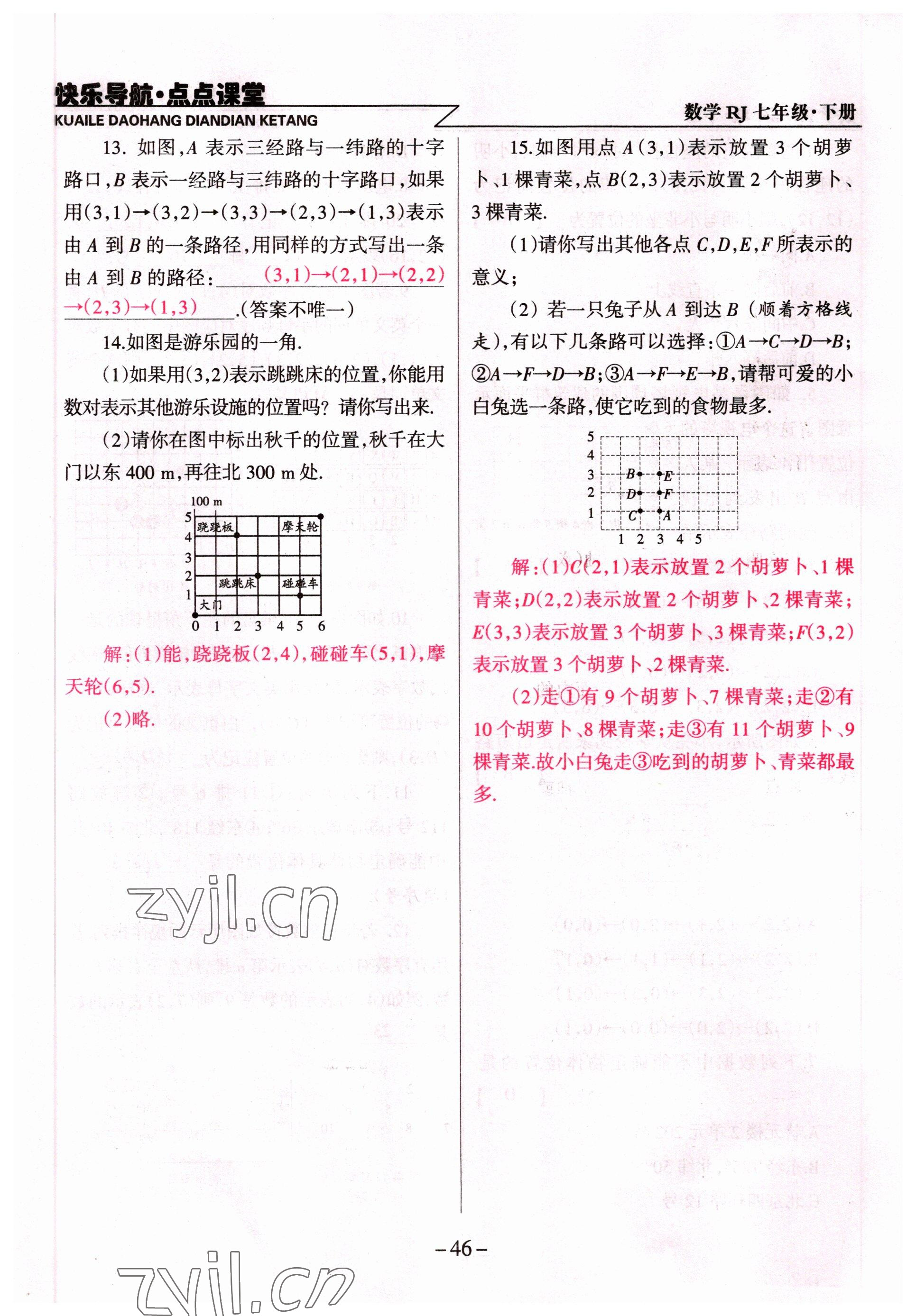 注:目前有些书本章节名称可能整理的还不是很完善,但都是按照顺序排列的,请同学们按照顺序仔细查找。练习册 2022年快乐导航点点课堂七年级数学下册人教版 答案主要是用来给同学们做完题方便对答案用的,请勿直接抄袭。