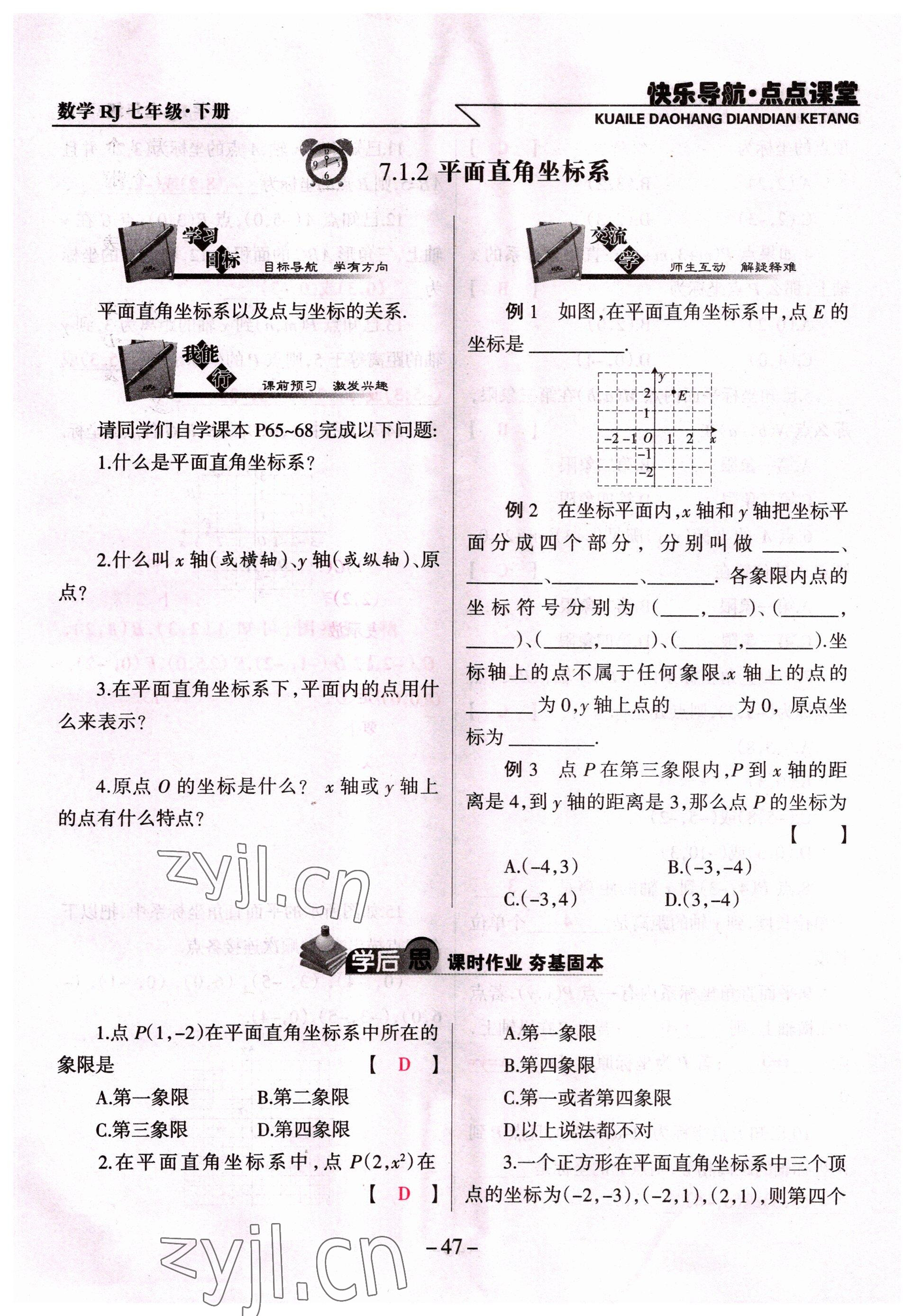 注:目前有些书本章节名称可能整理的还不是很完善,但都是按照顺序排列的,请同学们按照顺序仔细查找。练习册 2022年快乐导航点点课堂七年级数学下册人教版 答案主要是用来给同学们做完题方便对答案用的,请勿直接抄袭。