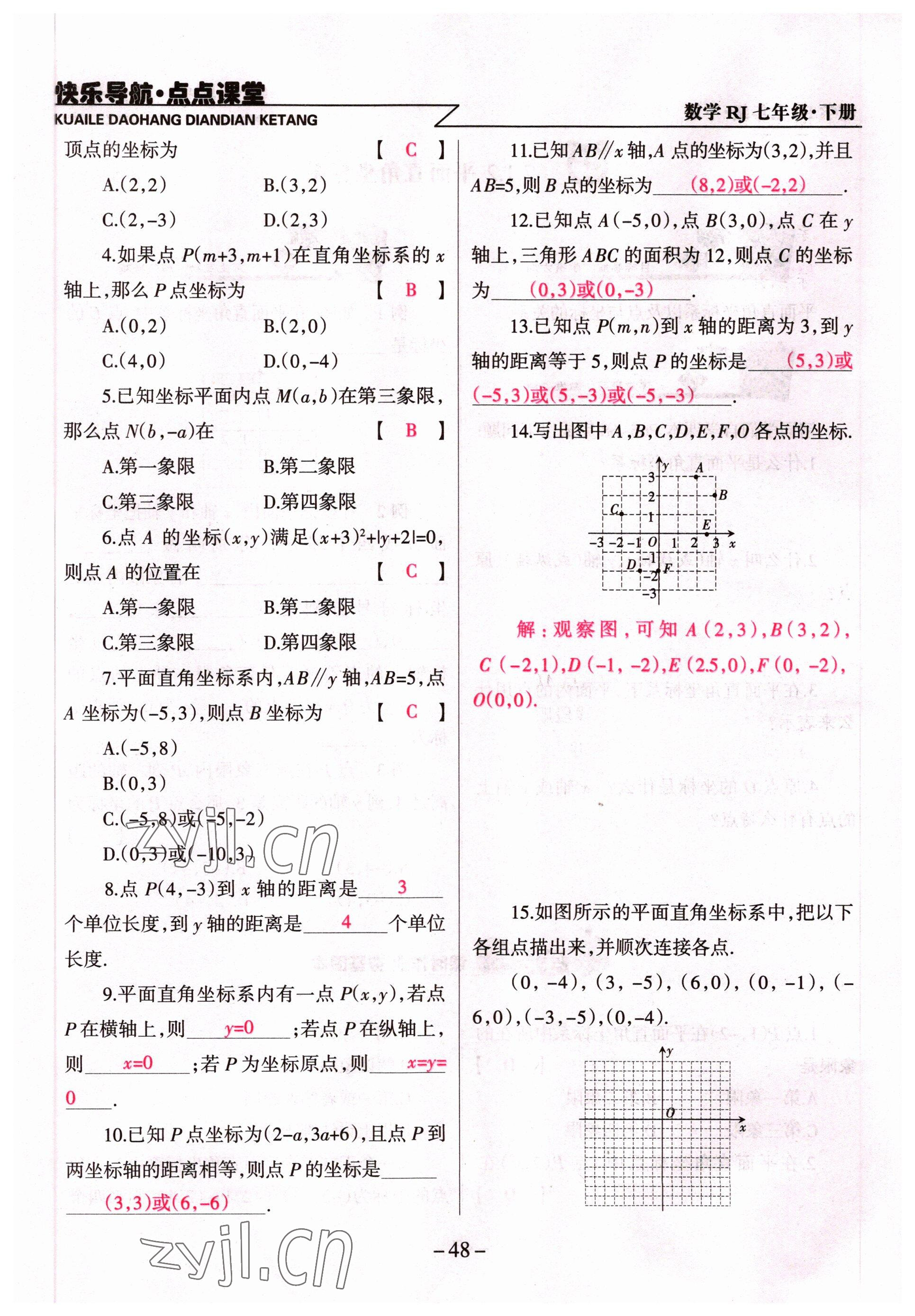 注:目前有些书本章节名称可能整理的还不是很完善,但都是按照顺序排列的,请同学们按照顺序仔细查找。练习册 2022年快乐导航点点课堂七年级数学下册人教版 答案主要是用来给同学们做完题方便对答案用的,请勿直接抄袭。