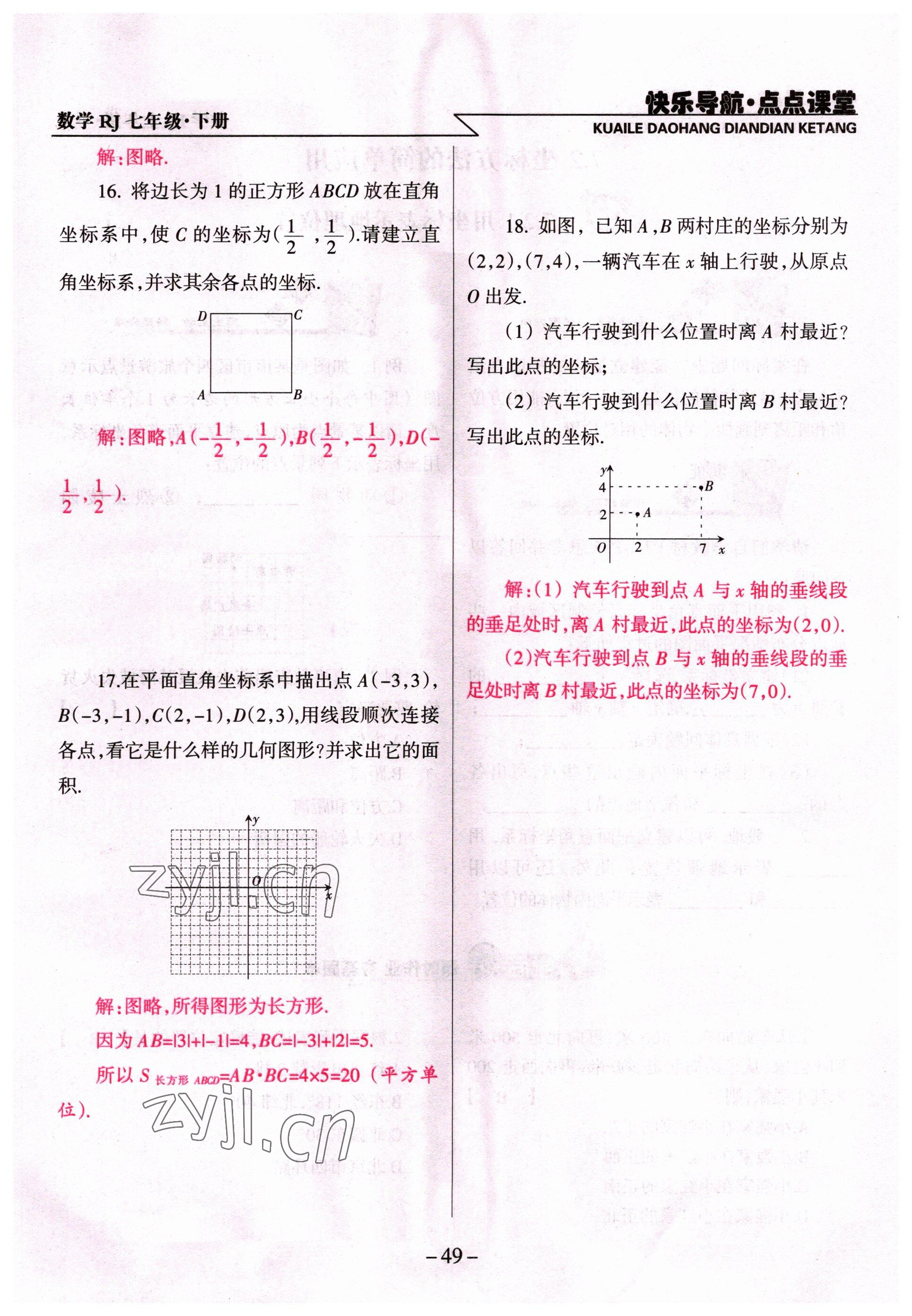 注:目前有些书本章节名称可能整理的还不是很完善,但都是按照顺序排列的,请同学们按照顺序仔细查找。练习册 2022年快乐导航点点课堂七年级数学下册人教版 答案主要是用来给同学们做完题方便对答案用的,请勿直接抄袭。