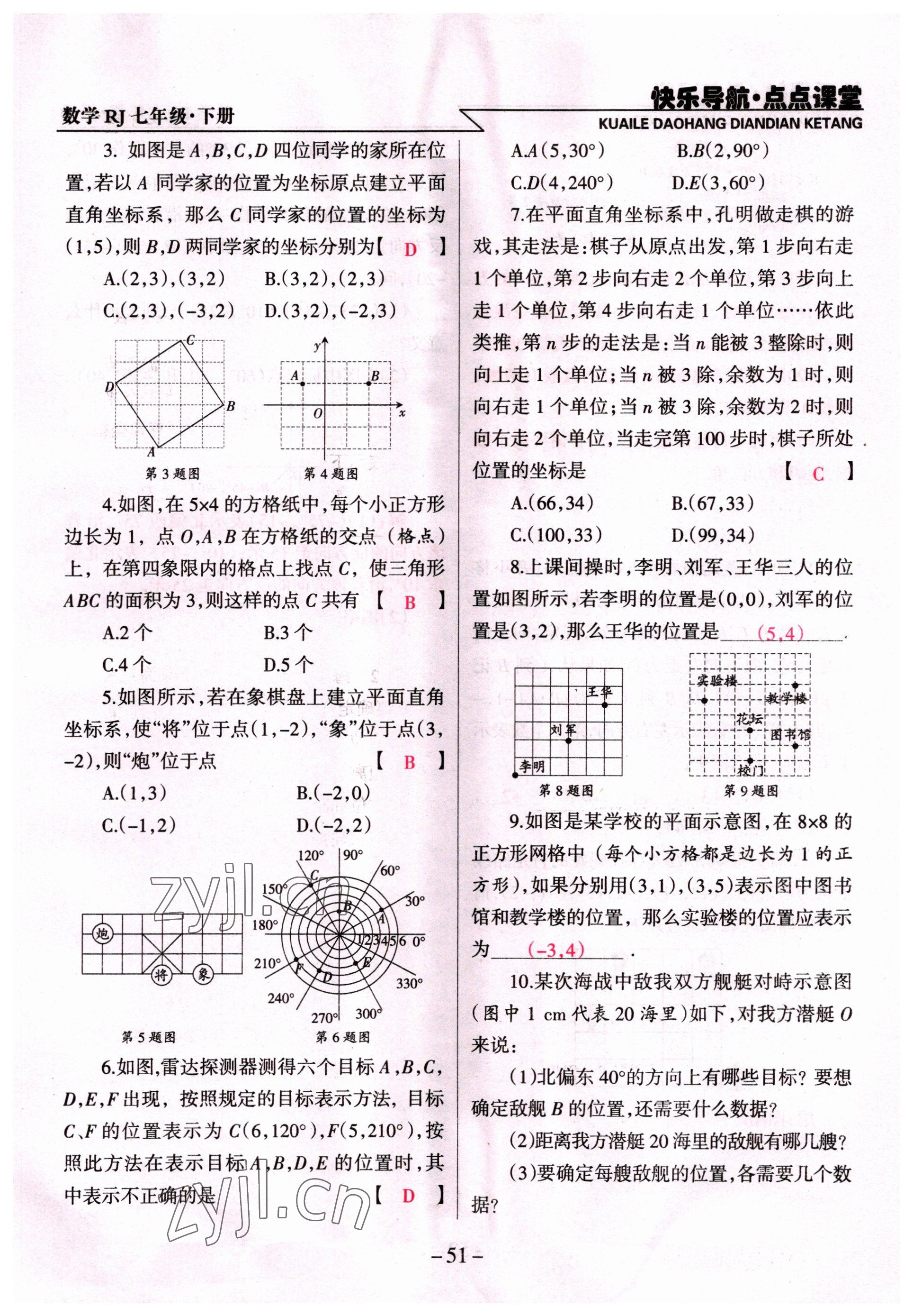 注:目前有些书本章节名称可能整理的还不是很完善,但都是按照顺序排列的,请同学们按照顺序仔细查找。练习册 2022年快乐导航点点课堂七年级数学下册人教版 答案主要是用来给同学们做完题方便对答案用的,请勿直接抄袭。