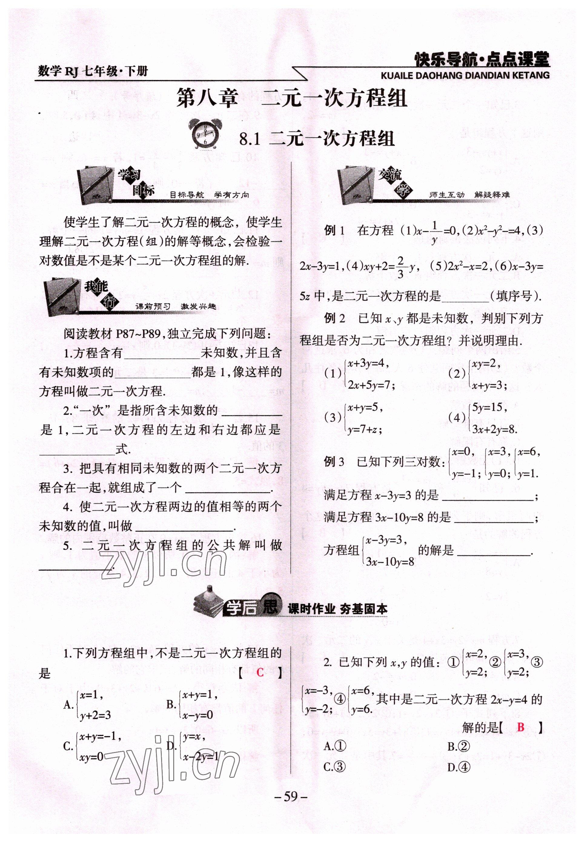 注:目前有些书本章节名称可能整理的还不是很完善,但都是按照顺序排列的,请同学们按照顺序仔细查找。练习册 2022年快乐导航点点课堂七年级数学下册人教版 答案主要是用来给同学们做完题方便对答案用的,请勿直接抄袭。