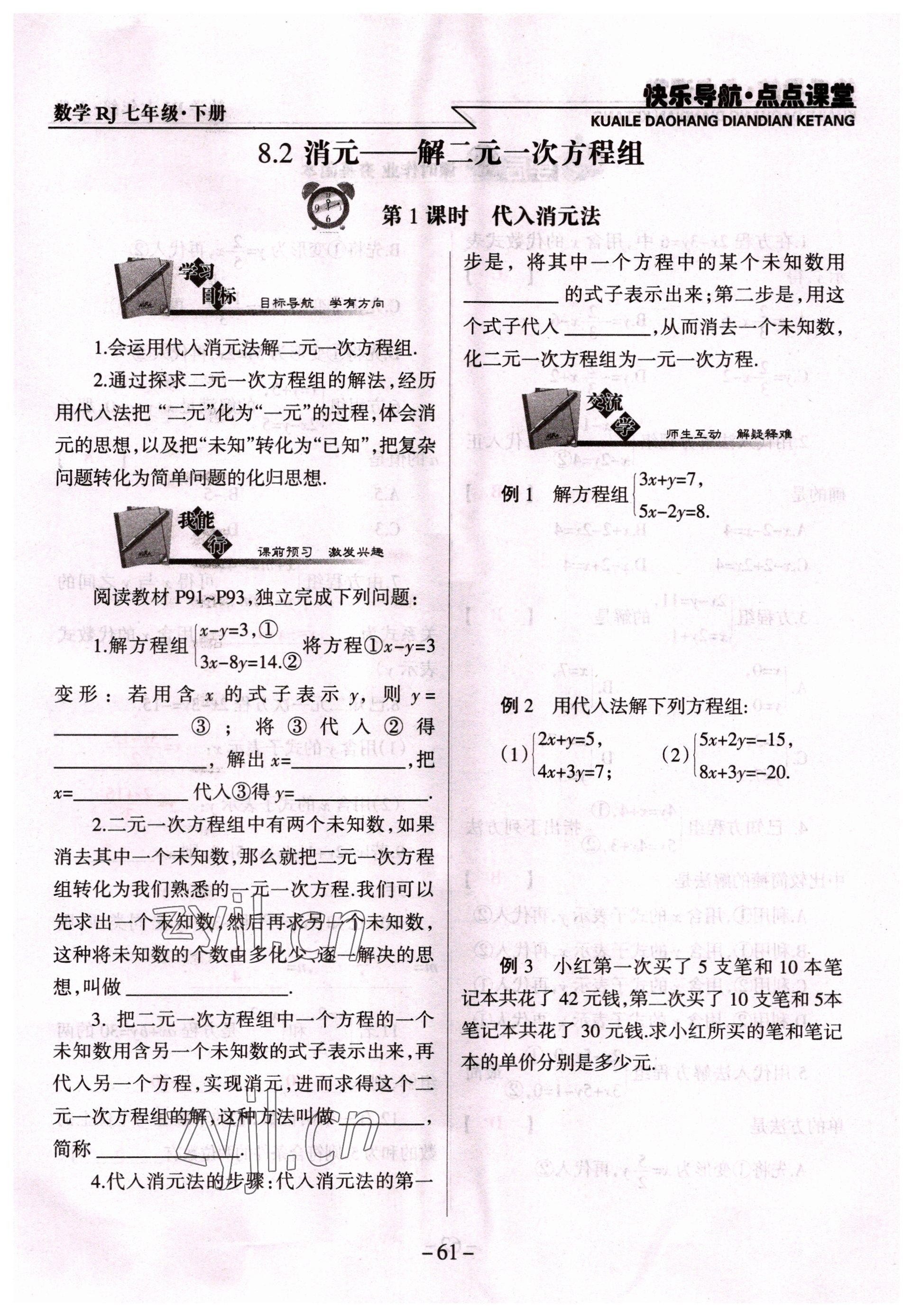 注:目前有些书本章节名称可能整理的还不是很完善,但都是按照顺序排列的,请同学们按照顺序仔细查找。练习册 2022年快乐导航点点课堂七年级数学下册人教版 答案主要是用来给同学们做完题方便对答案用的,请勿直接抄袭。