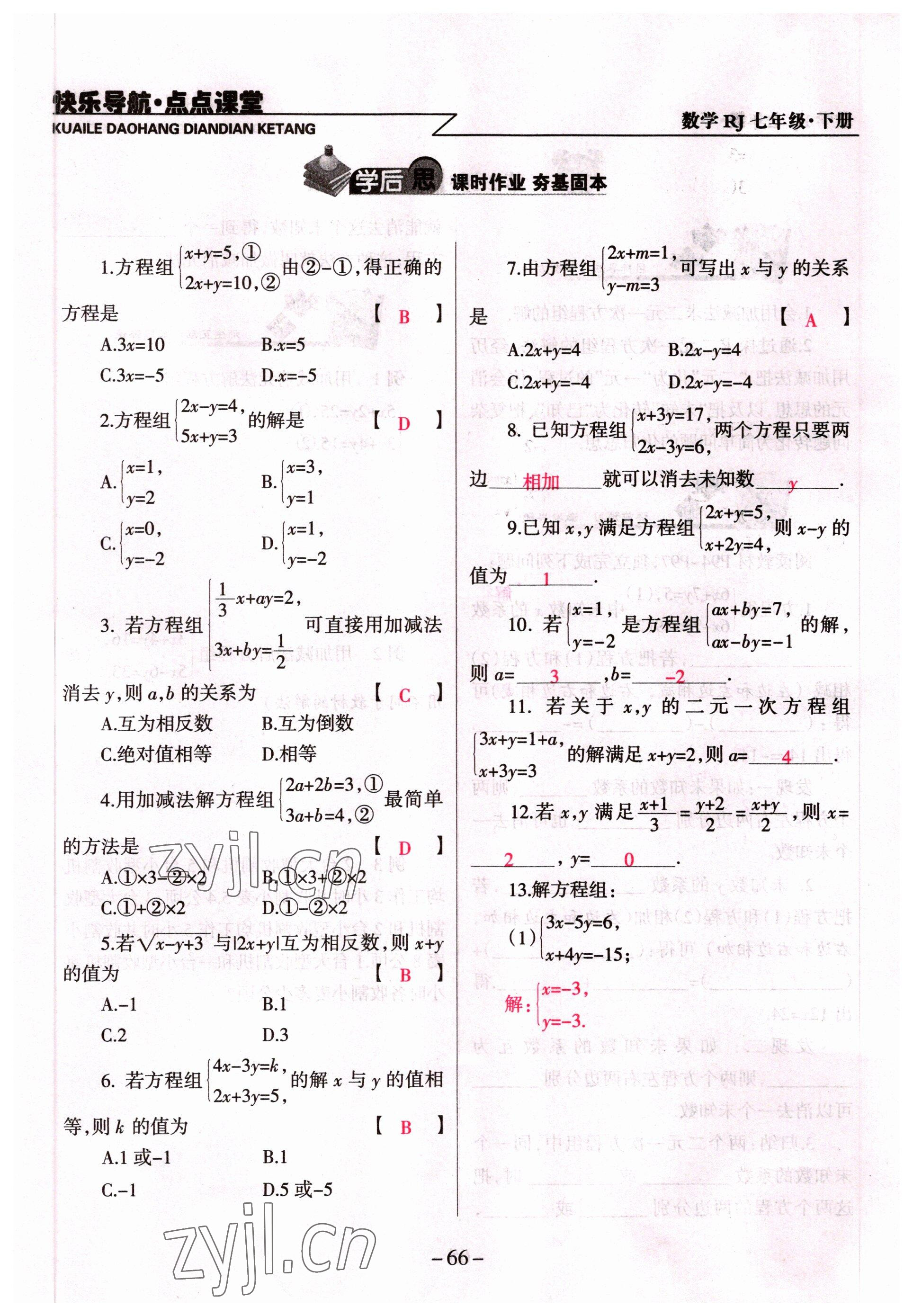 注:目前有些书本章节名称可能整理的还不是很完善,但都是按照顺序排列的,请同学们按照顺序仔细查找。练习册 2022年快乐导航点点课堂七年级数学下册人教版 答案主要是用来给同学们做完题方便对答案用的,请勿直接抄袭。