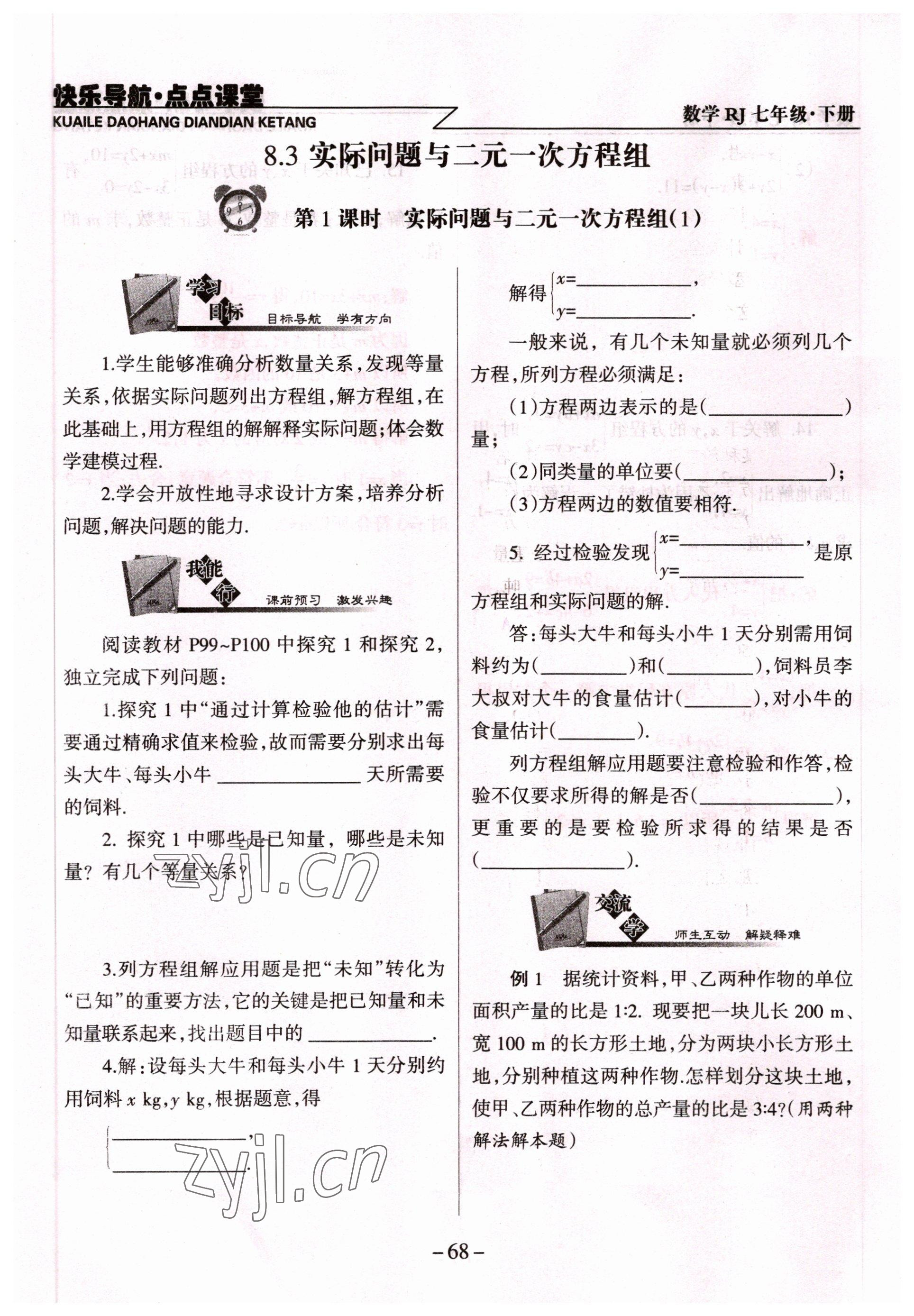注:目前有些书本章节名称可能整理的还不是很完善,但都是按照顺序排列的,请同学们按照顺序仔细查找。练习册 2022年快乐导航点点课堂七年级数学下册人教版 答案主要是用来给同学们做完题方便对答案用的,请勿直接抄袭。