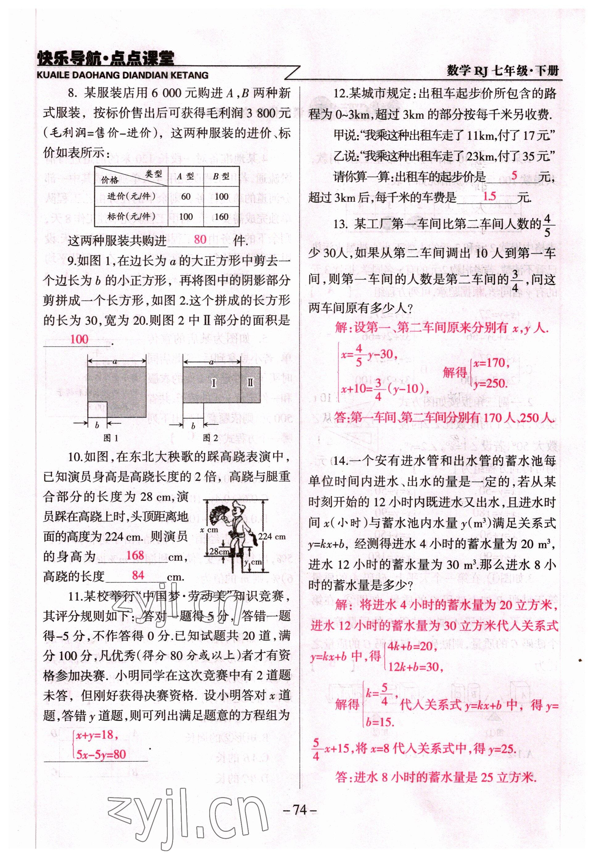 注:目前有些书本章节名称可能整理的还不是很完善,但都是按照顺序排列的,请同学们按照顺序仔细查找。练习册 2022年快乐导航点点课堂七年级数学下册人教版 答案主要是用来给同学们做完题方便对答案用的,请勿直接抄袭。