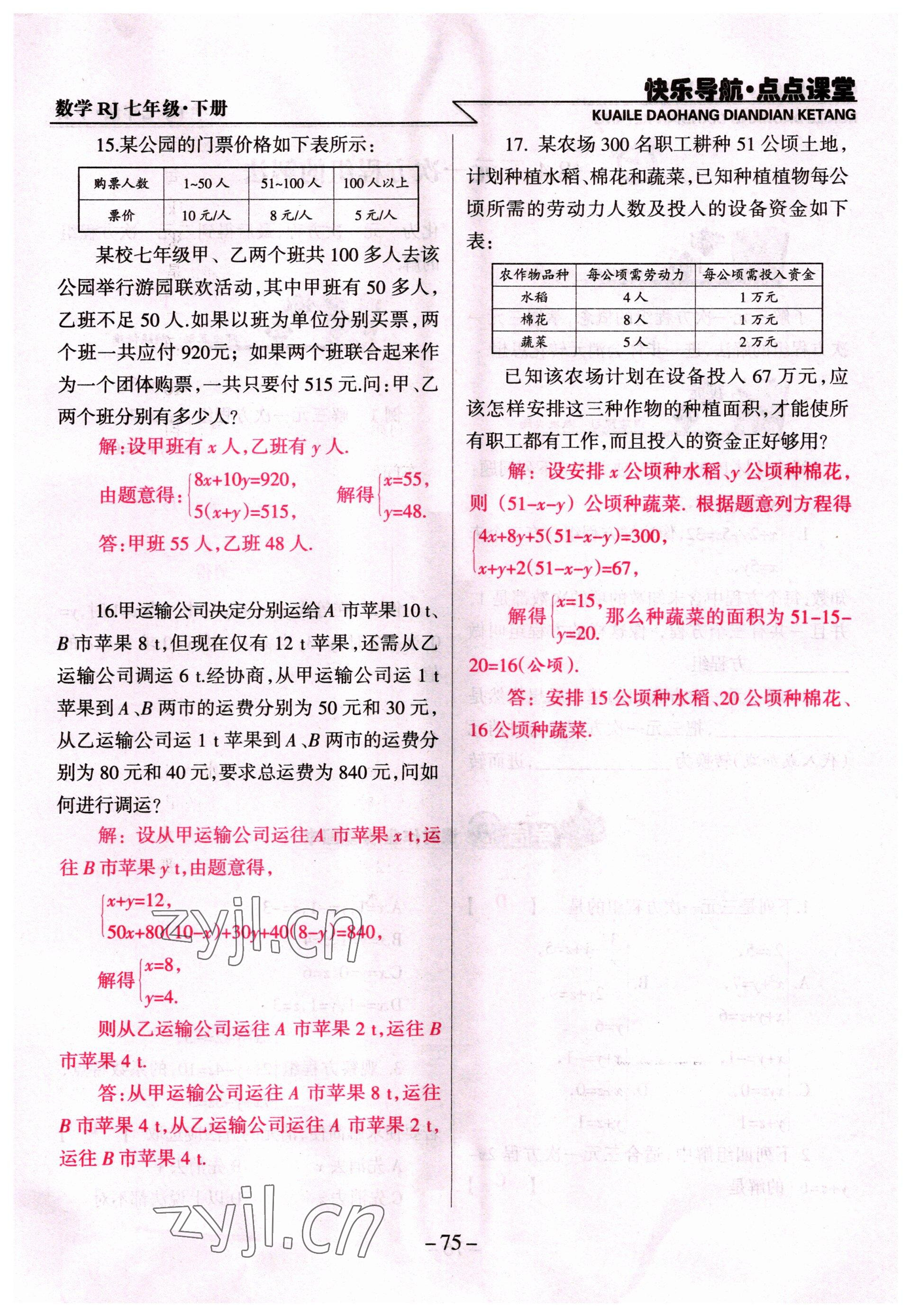 注:目前有些书本章节名称可能整理的还不是很完善,但都是按照顺序排列的,请同学们按照顺序仔细查找。练习册 2022年快乐导航点点课堂七年级数学下册人教版 答案主要是用来给同学们做完题方便对答案用的,请勿直接抄袭。