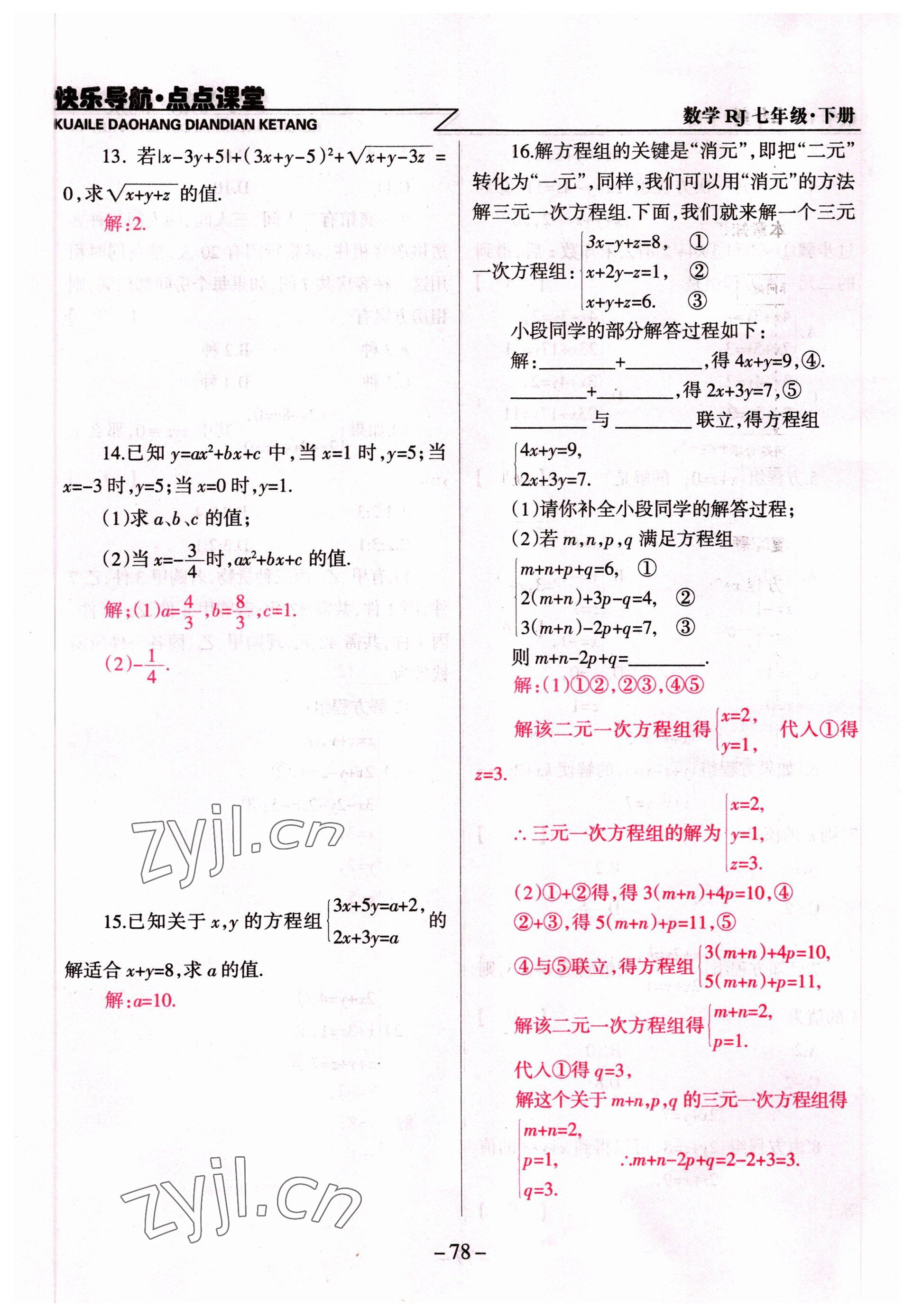 注:目前有些书本章节名称可能整理的还不是很完善,但都是按照顺序排列的,请同学们按照顺序仔细查找。练习册 2022年快乐导航点点课堂七年级数学下册人教版 答案主要是用来给同学们做完题方便对答案用的,请勿直接抄袭。