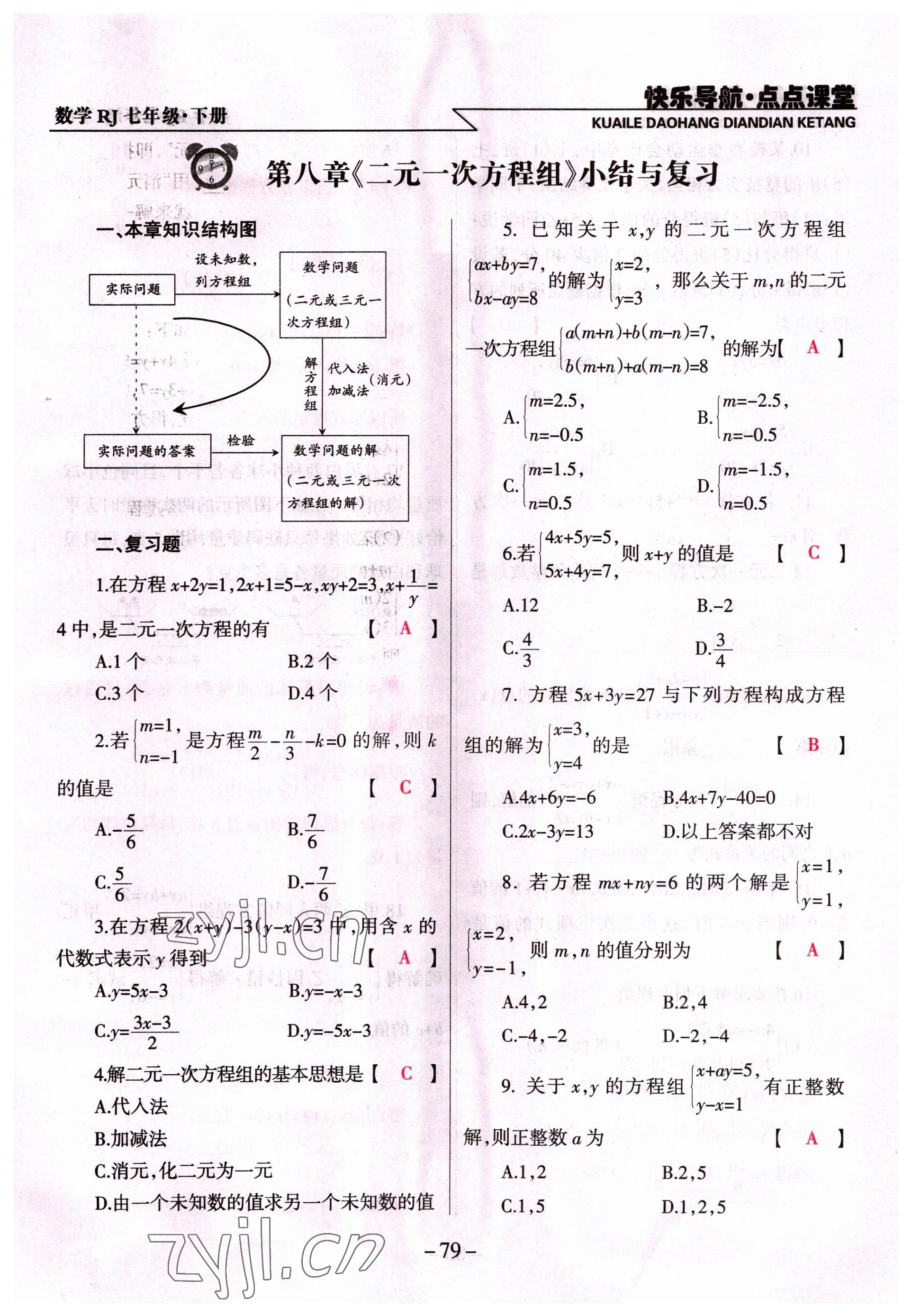 注:目前有些书本章节名称可能整理的还不是很完善,但都是按照顺序排列的,请同学们按照顺序仔细查找。练习册 2022年快乐导航点点课堂七年级数学下册人教版 答案主要是用来给同学们做完题方便对答案用的,请勿直接抄袭。