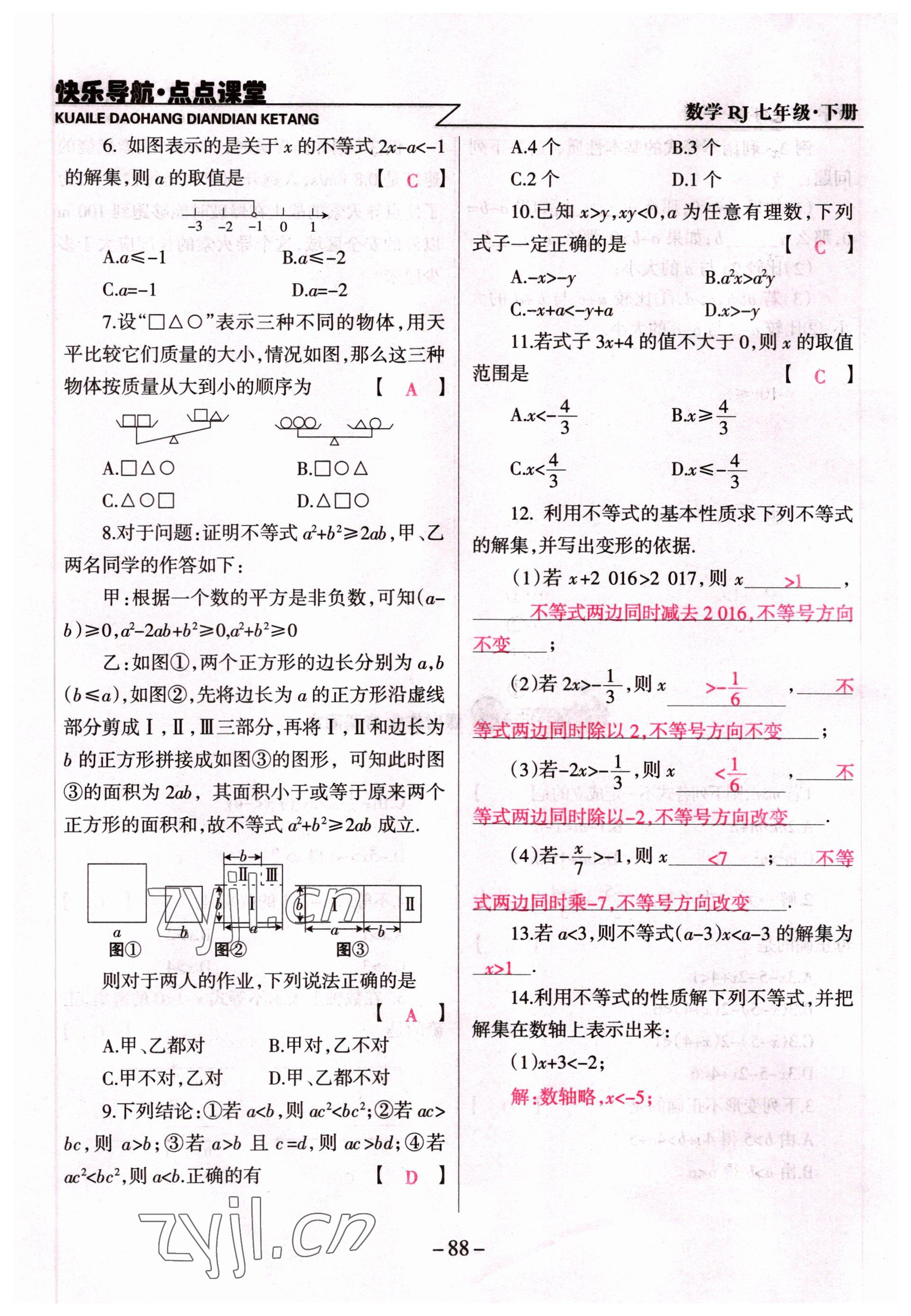 注:目前有些书本章节名称可能整理的还不是很完善,但都是按照顺序排列的,请同学们按照顺序仔细查找。练习册 2022年快乐导航点点课堂七年级数学下册人教版 答案主要是用来给同学们做完题方便对答案用的,请勿直接抄袭。