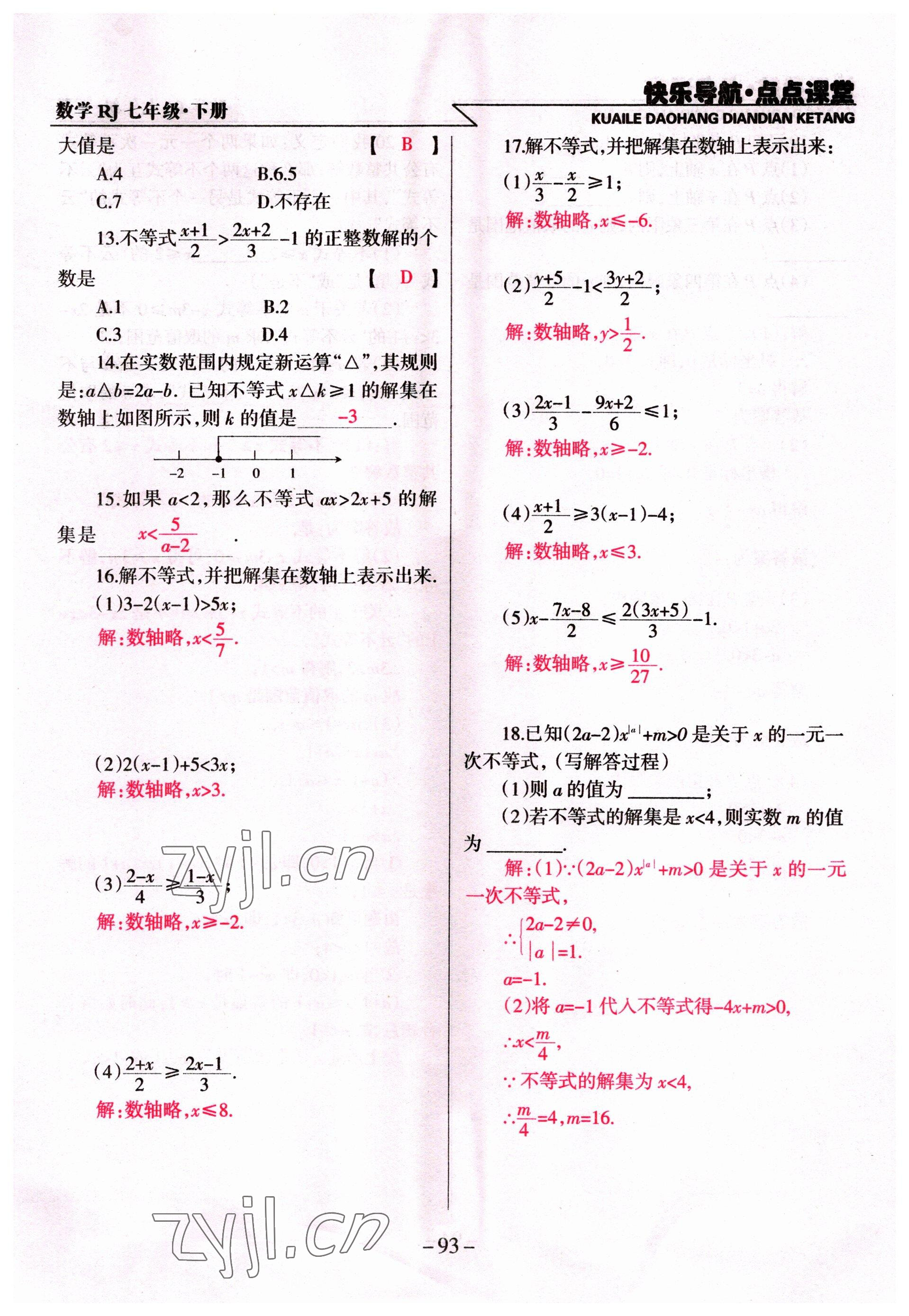 注:目前有些书本章节名称可能整理的还不是很完善,但都是按照顺序排列的,请同学们按照顺序仔细查找。练习册 2022年快乐导航点点课堂七年级数学下册人教版 答案主要是用来给同学们做完题方便对答案用的,请勿直接抄袭。