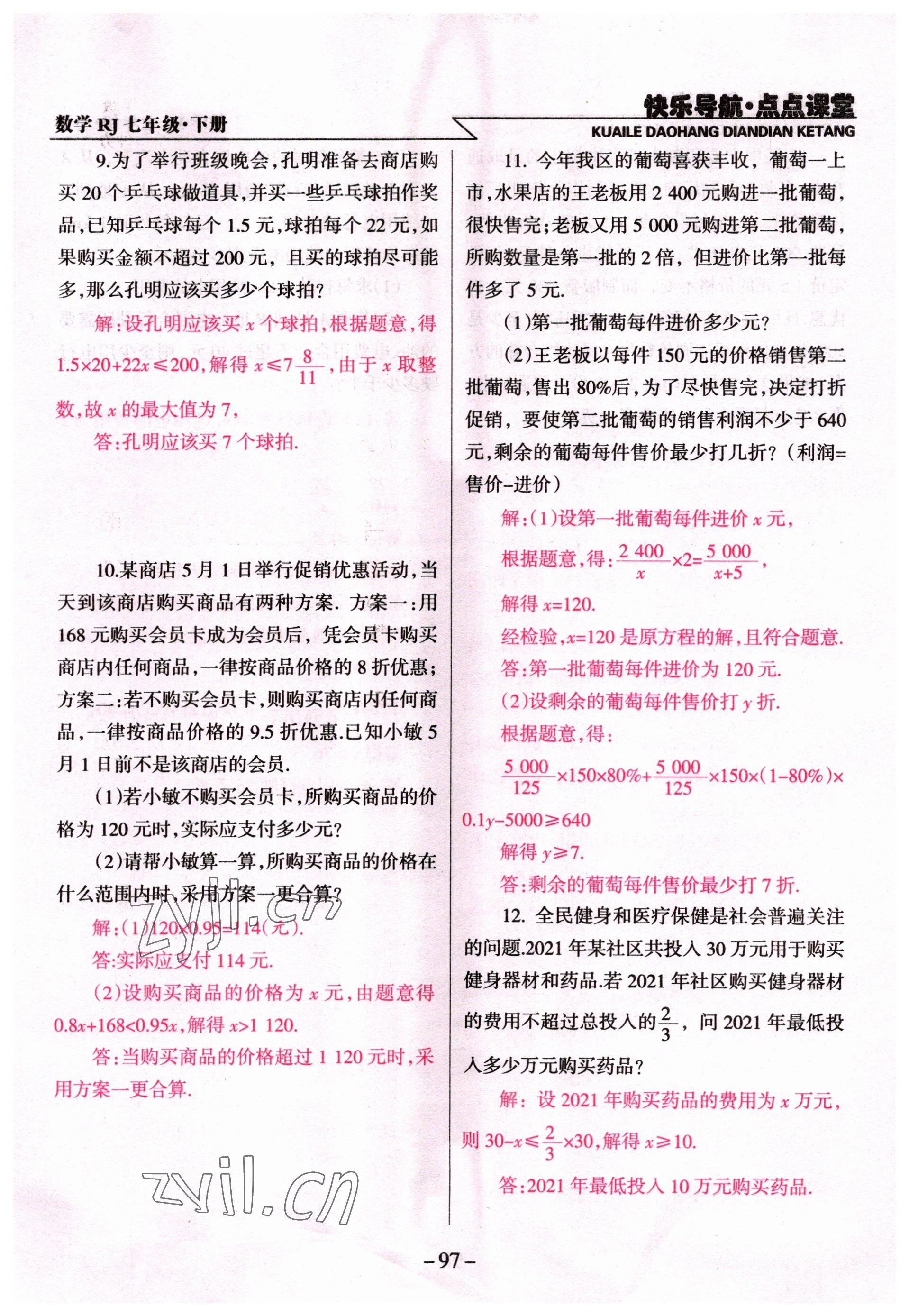 注:目前有些书本章节名称可能整理的还不是很完善,但都是按照顺序排列的,请同学们按照顺序仔细查找。练习册 2022年快乐导航点点课堂七年级数学下册人教版 答案主要是用来给同学们做完题方便对答案用的,请勿直接抄袭。
