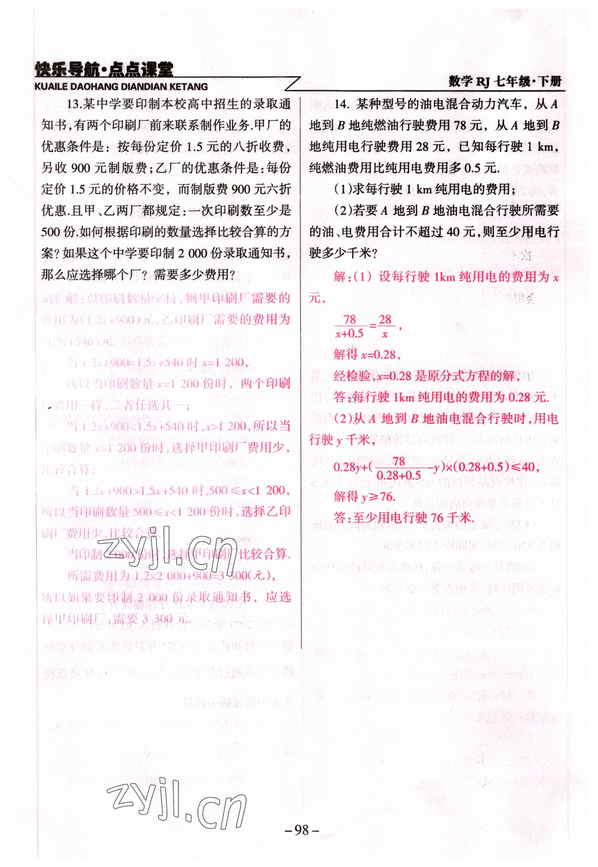 注:目前有些书本章节名称可能整理的还不是很完善,但都是按照顺序排列的,请同学们按照顺序仔细查找。练习册 2022年快乐导航点点课堂七年级数学下册人教版 答案主要是用来给同学们做完题方便对答案用的,请勿直接抄袭。