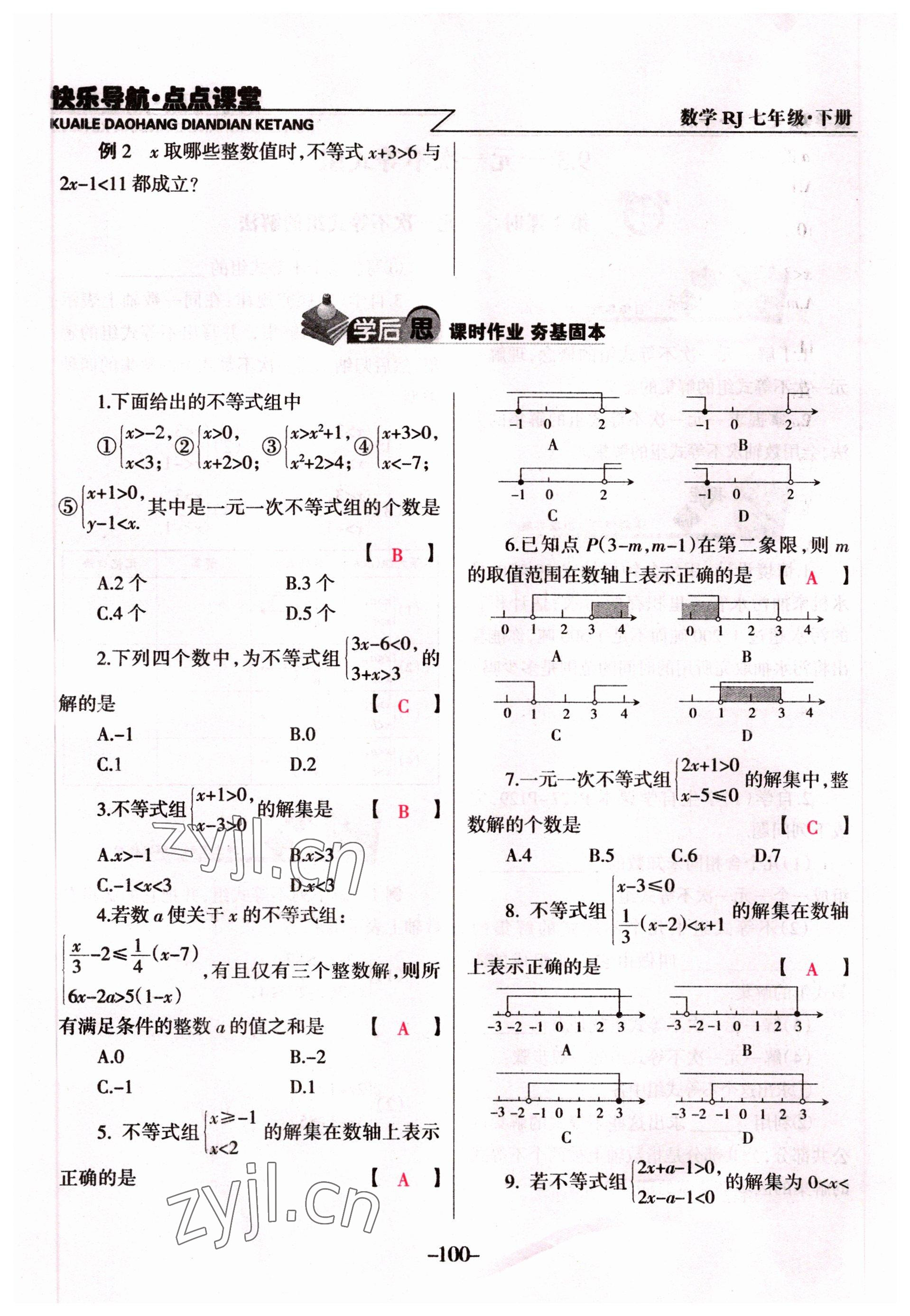 注:目前有些书本章节名称可能整理的还不是很完善,但都是按照顺序排列的,请同学们按照顺序仔细查找。练习册 2022年快乐导航点点课堂七年级数学下册人教版 答案主要是用来给同学们做完题方便对答案用的,请勿直接抄袭。