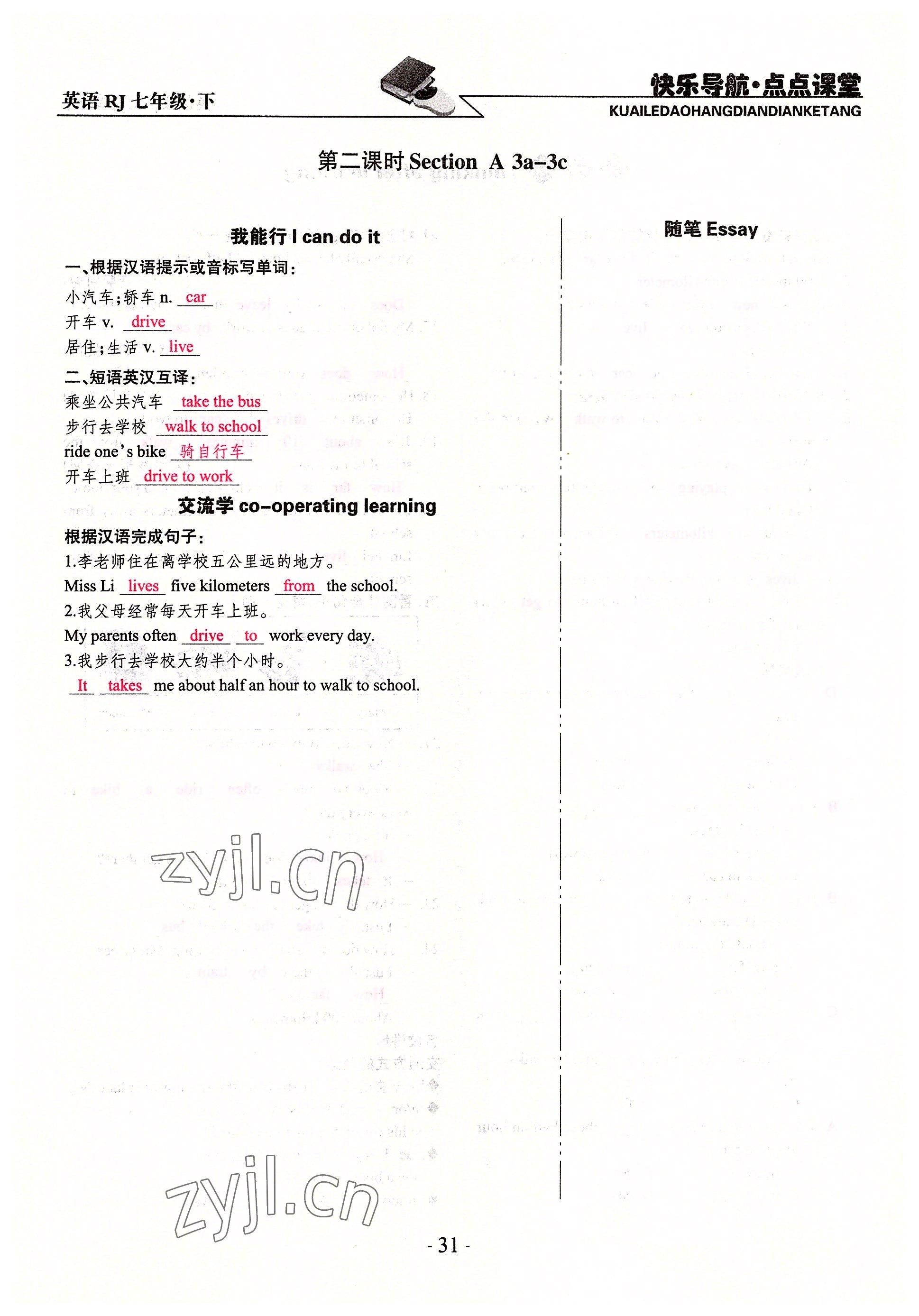 注:目前有些书本章节名称可能整理的还不是很完善,但都是按照顺序排列的,请同学们按照顺序仔细查找。练习册 2022年快乐导航点点课堂七年级英语下册人教版 答案主要是用来给同学们做完题方便对答案用的,请勿直接抄袭。