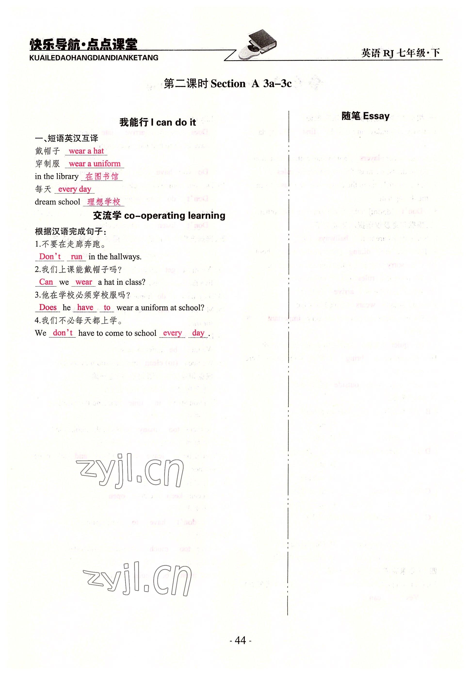 注:目前有些书本章节名称可能整理的还不是很完善,但都是按照顺序排列的,请同学们按照顺序仔细查找。练习册 2022年快乐导航点点课堂七年级英语下册人教版 答案主要是用来给同学们做完题方便对答案用的,请勿直接抄袭。