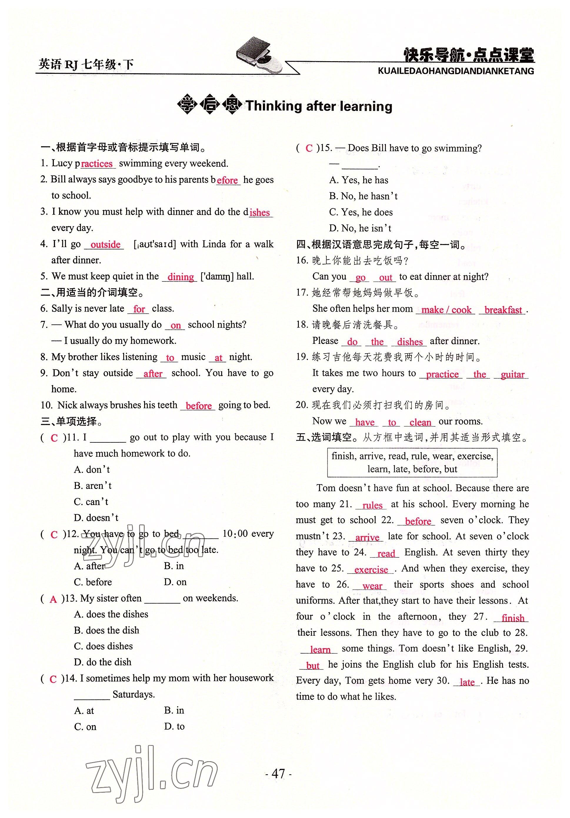 注:目前有些书本章节名称可能整理的还不是很完善,但都是按照顺序排列的,请同学们按照顺序仔细查找。练习册 2022年快乐导航点点课堂七年级英语下册人教版 答案主要是用来给同学们做完题方便对答案用的,请勿直接抄袭。
