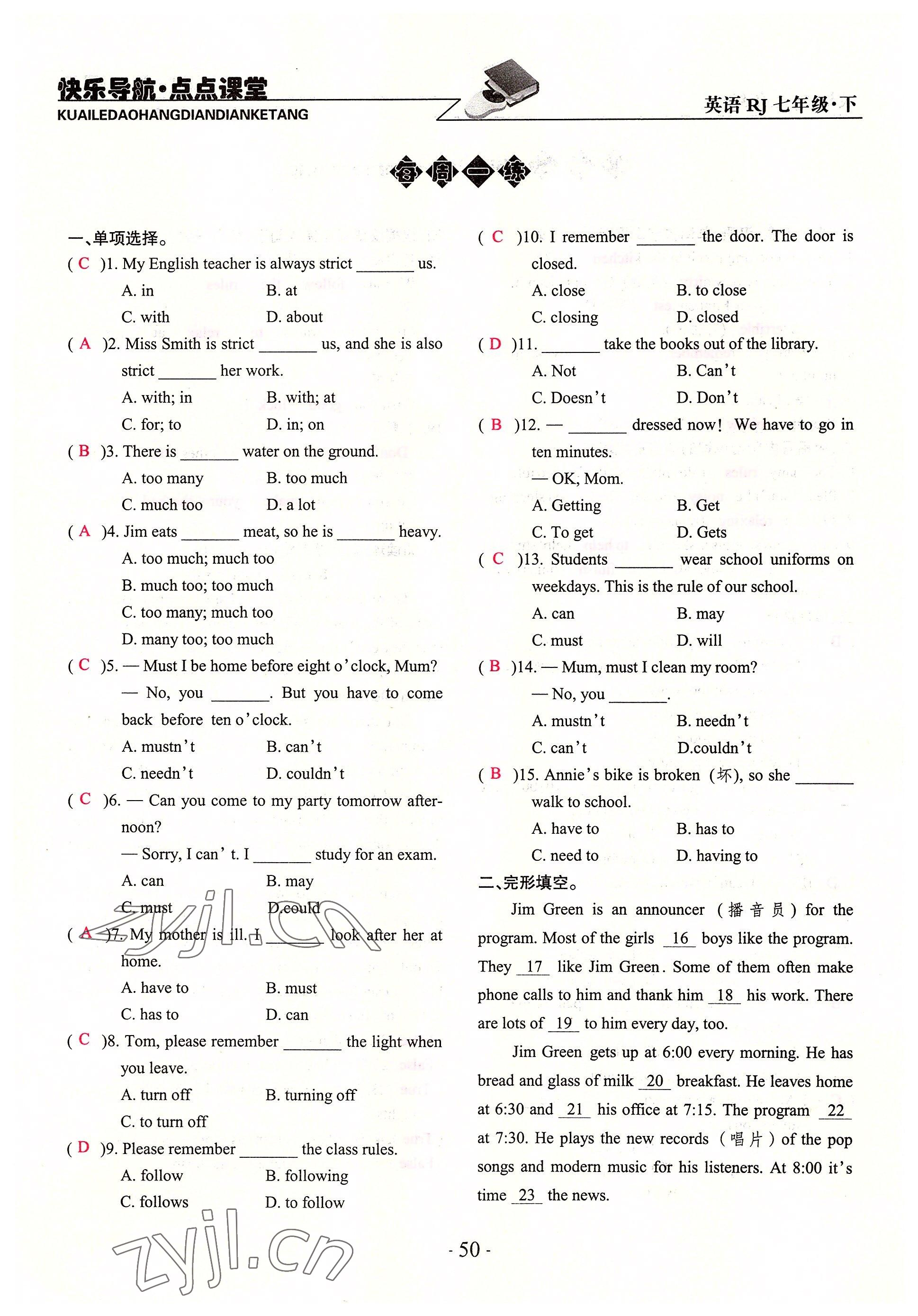 注:目前有些书本章节名称可能整理的还不是很完善,但都是按照顺序排列的,请同学们按照顺序仔细查找。练习册 2022年快乐导航点点课堂七年级英语下册人教版 答案主要是用来给同学们做完题方便对答案用的,请勿直接抄袭。