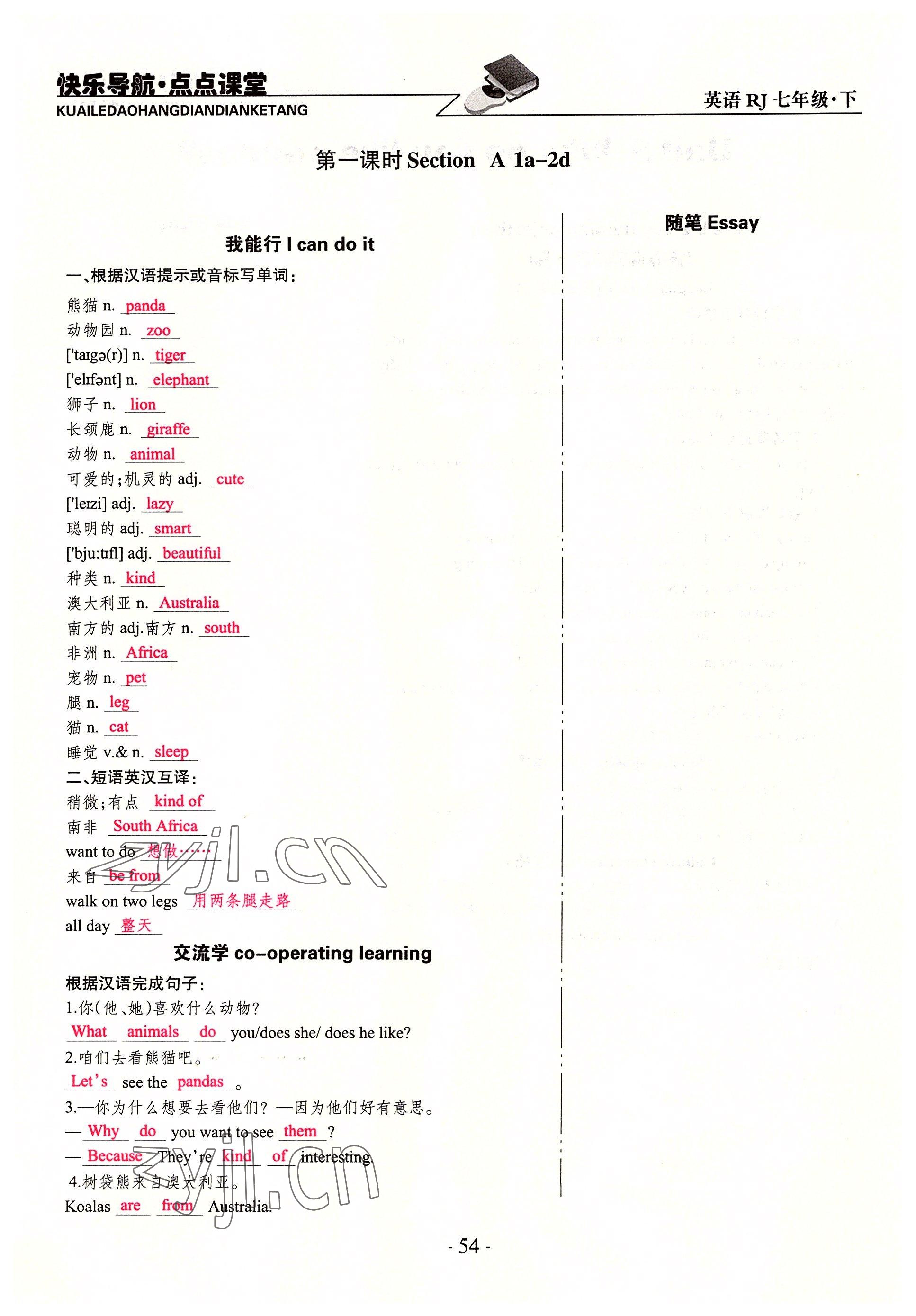 注:目前有些书本章节名称可能整理的还不是很完善,但都是按照顺序排列的,请同学们按照顺序仔细查找。练习册 2022年快乐导航点点课堂七年级英语下册人教版 答案主要是用来给同学们做完题方便对答案用的,请勿直接抄袭。