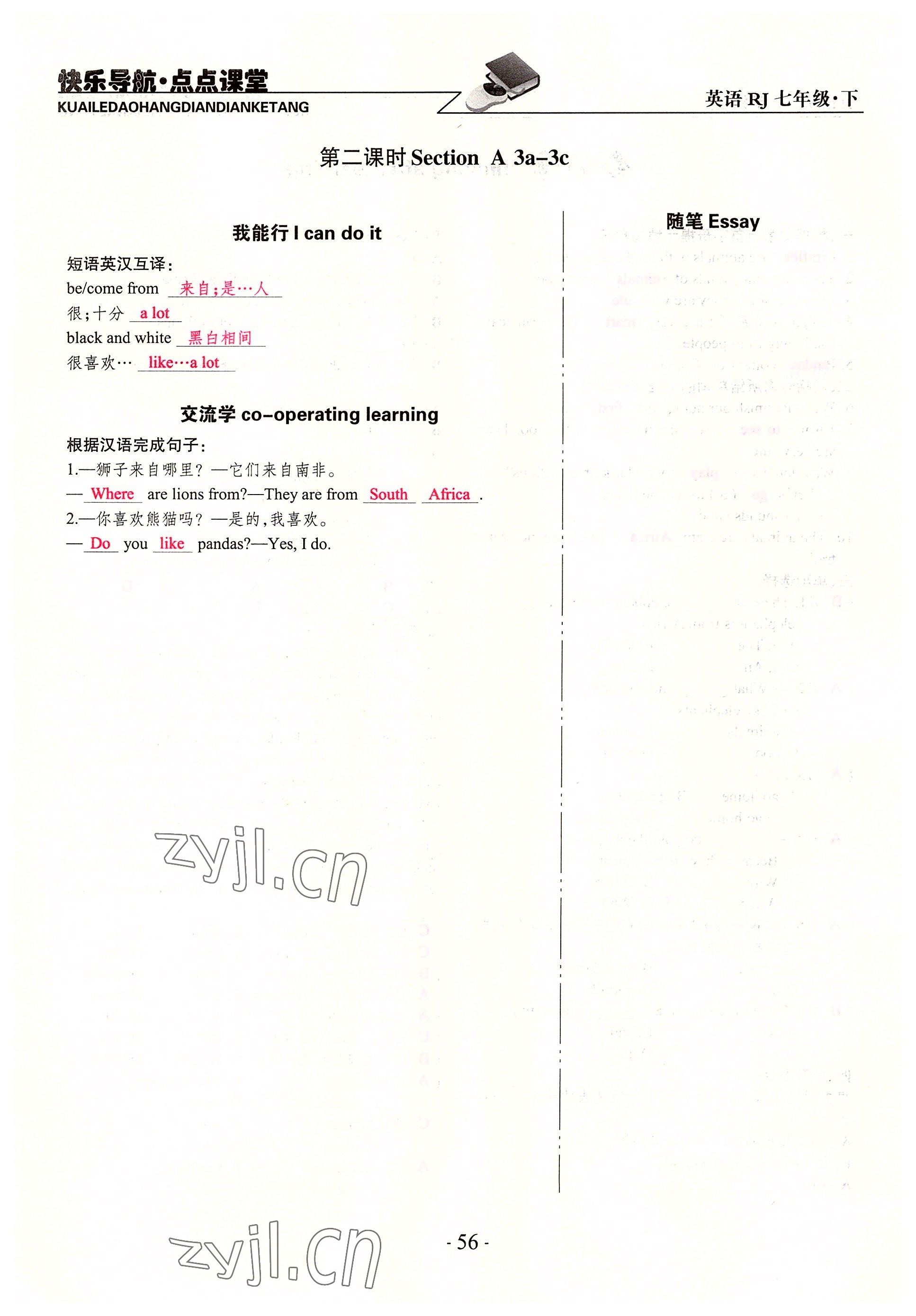 注:目前有些书本章节名称可能整理的还不是很完善,但都是按照顺序排列的,请同学们按照顺序仔细查找。练习册 2022年快乐导航点点课堂七年级英语下册人教版 答案主要是用来给同学们做完题方便对答案用的,请勿直接抄袭。