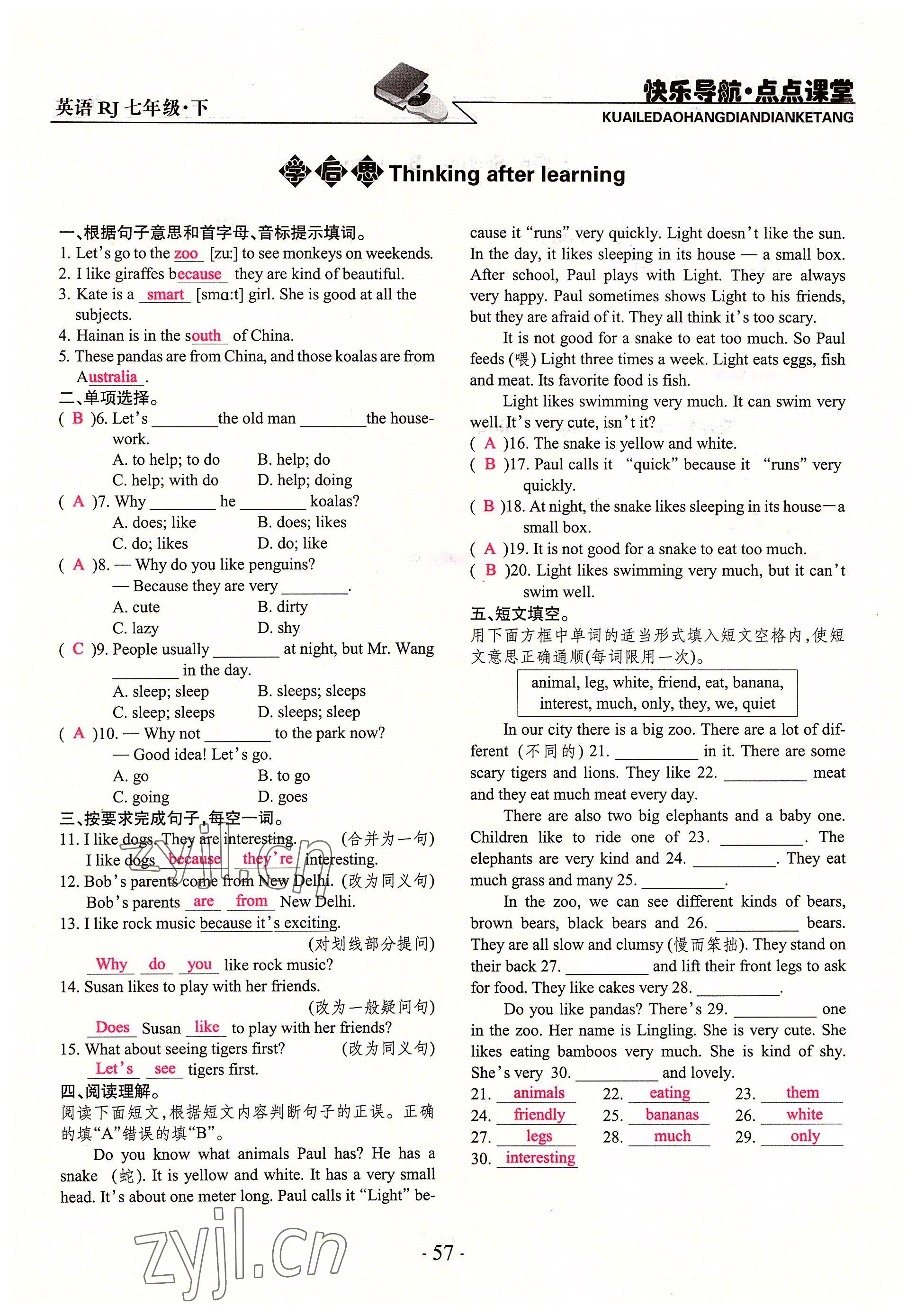 注:目前有些书本章节名称可能整理的还不是很完善,但都是按照顺序排列的,请同学们按照顺序仔细查找。练习册 2022年快乐导航点点课堂七年级英语下册人教版 答案主要是用来给同学们做完题方便对答案用的,请勿直接抄袭。