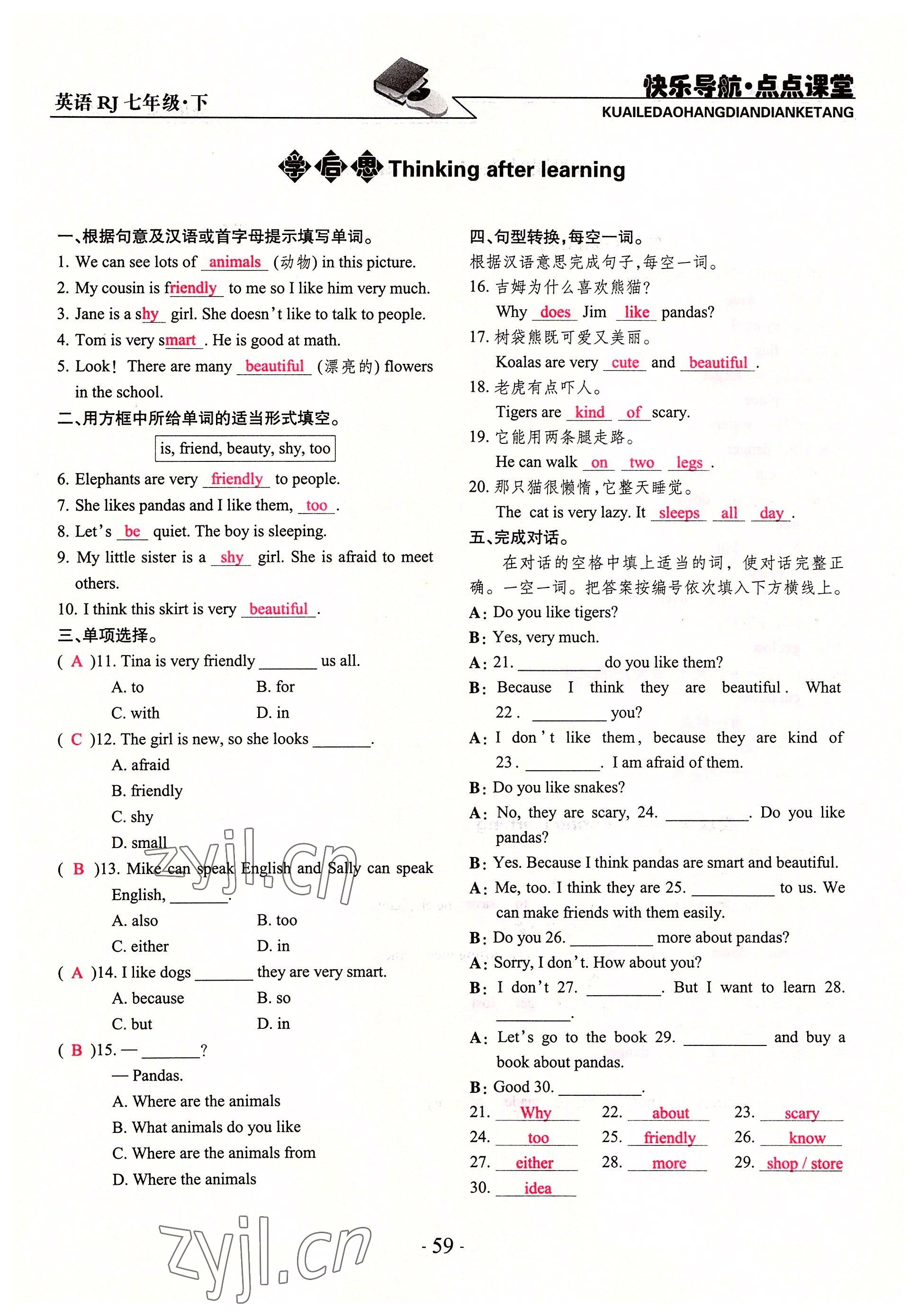 注:目前有些书本章节名称可能整理的还不是很完善,但都是按照顺序排列的,请同学们按照顺序仔细查找。练习册 2022年快乐导航点点课堂七年级英语下册人教版 答案主要是用来给同学们做完题方便对答案用的,请勿直接抄袭。