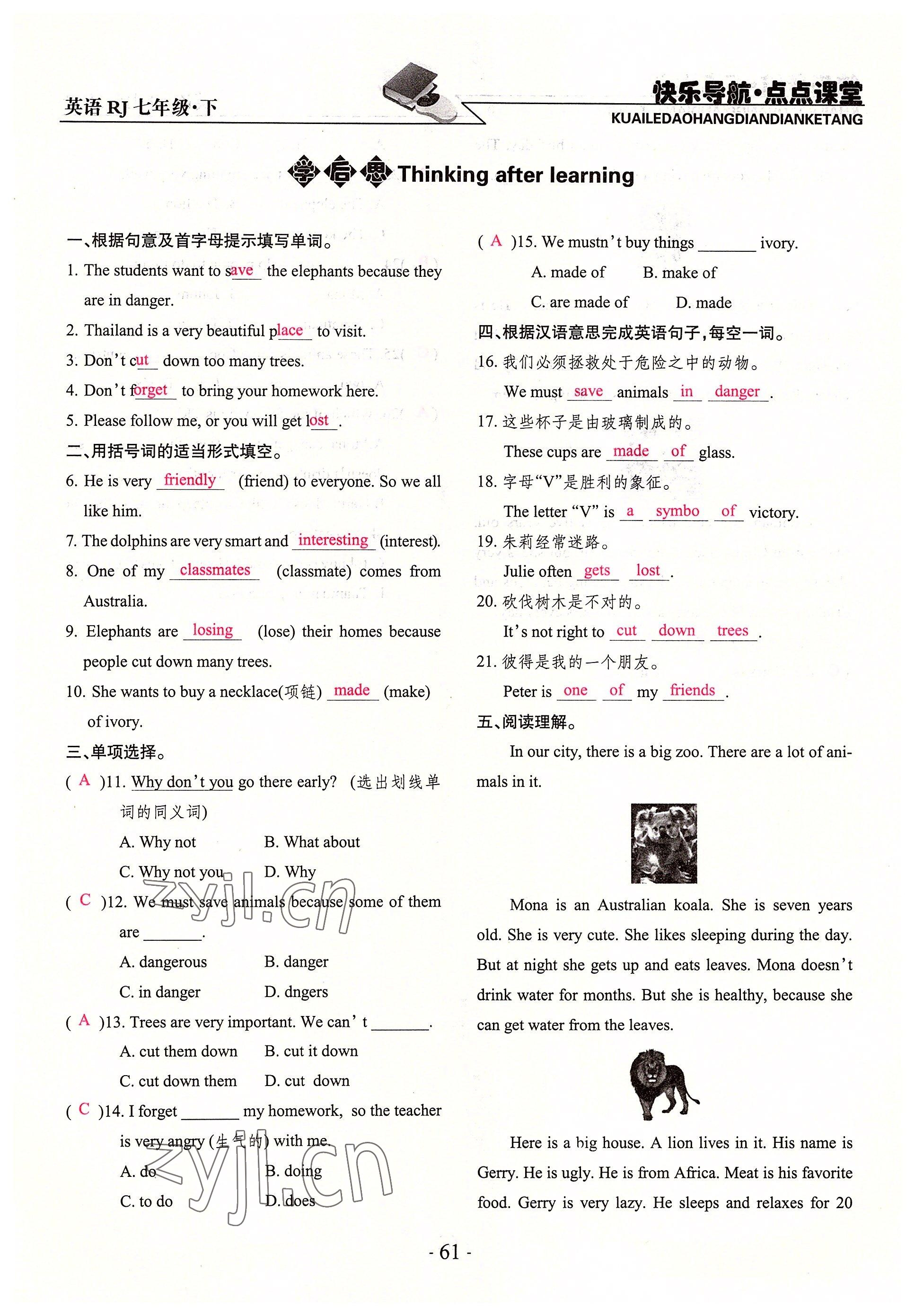 注:目前有些书本章节名称可能整理的还不是很完善,但都是按照顺序排列的,请同学们按照顺序仔细查找。练习册 2022年快乐导航点点课堂七年级英语下册人教版 答案主要是用来给同学们做完题方便对答案用的,请勿直接抄袭。