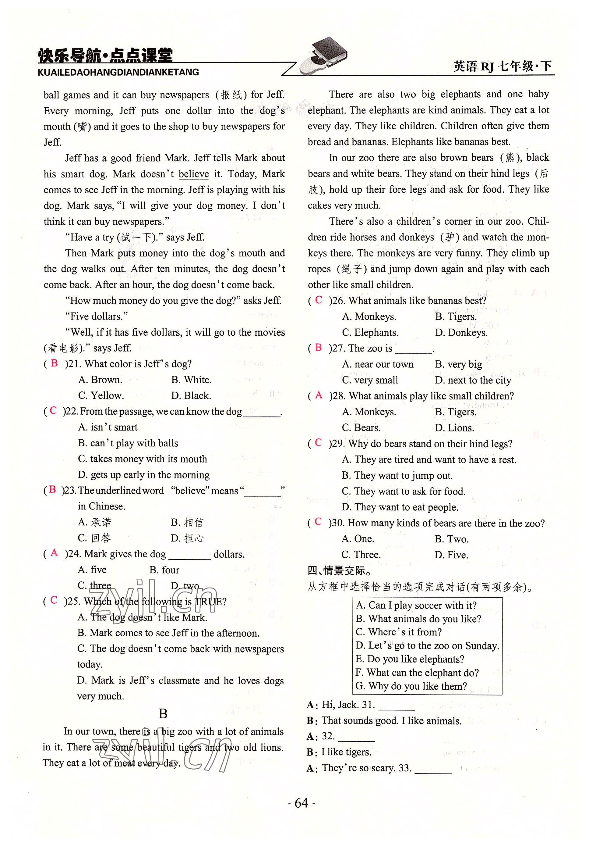 注:目前有些书本章节名称可能整理的还不是很完善,但都是按照顺序排列的,请同学们按照顺序仔细查找。练习册 2022年快乐导航点点课堂七年级英语下册人教版 答案主要是用来给同学们做完题方便对答案用的,请勿直接抄袭。