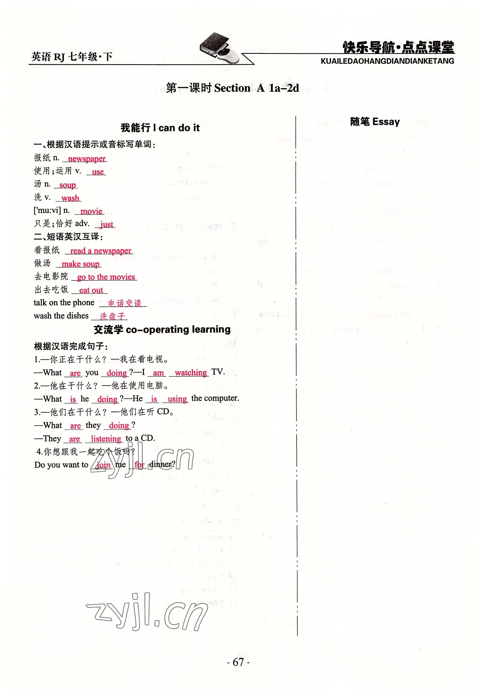 注:目前有些书本章节名称可能整理的还不是很完善,但都是按照顺序排列的,请同学们按照顺序仔细查找。练习册 2022年快乐导航点点课堂七年级英语下册人教版 答案主要是用来给同学们做完题方便对答案用的,请勿直接抄袭。