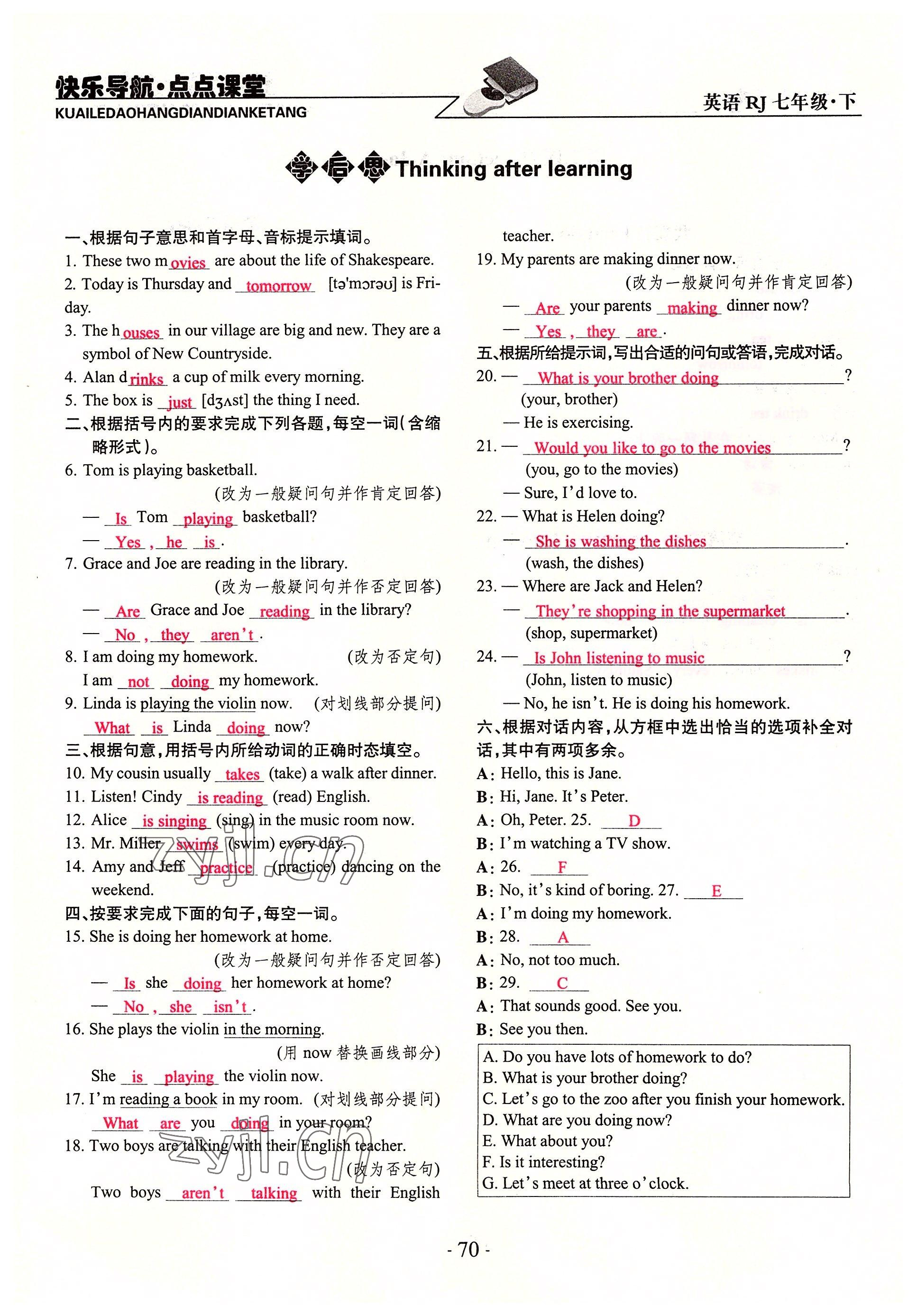 注:目前有些书本章节名称可能整理的还不是很完善,但都是按照顺序排列的,请同学们按照顺序仔细查找。练习册 2022年快乐导航点点课堂七年级英语下册人教版 答案主要是用来给同学们做完题方便对答案用的,请勿直接抄袭。